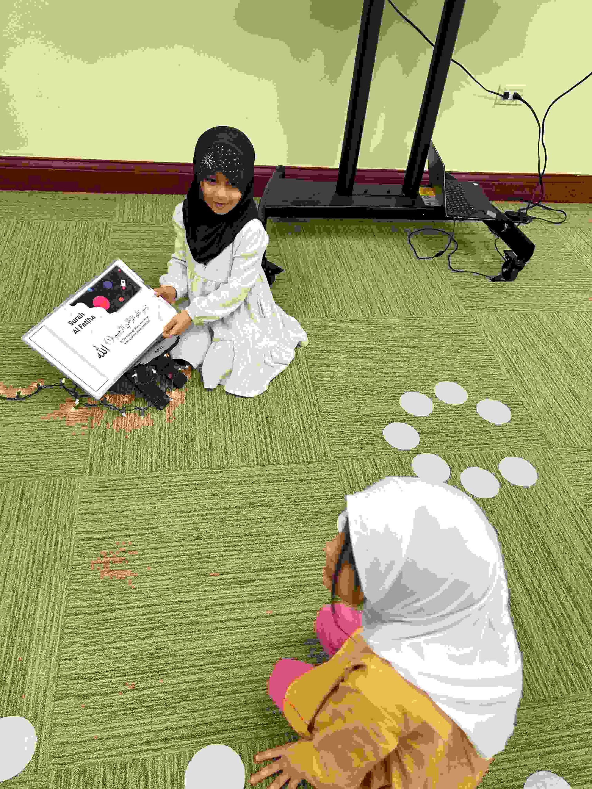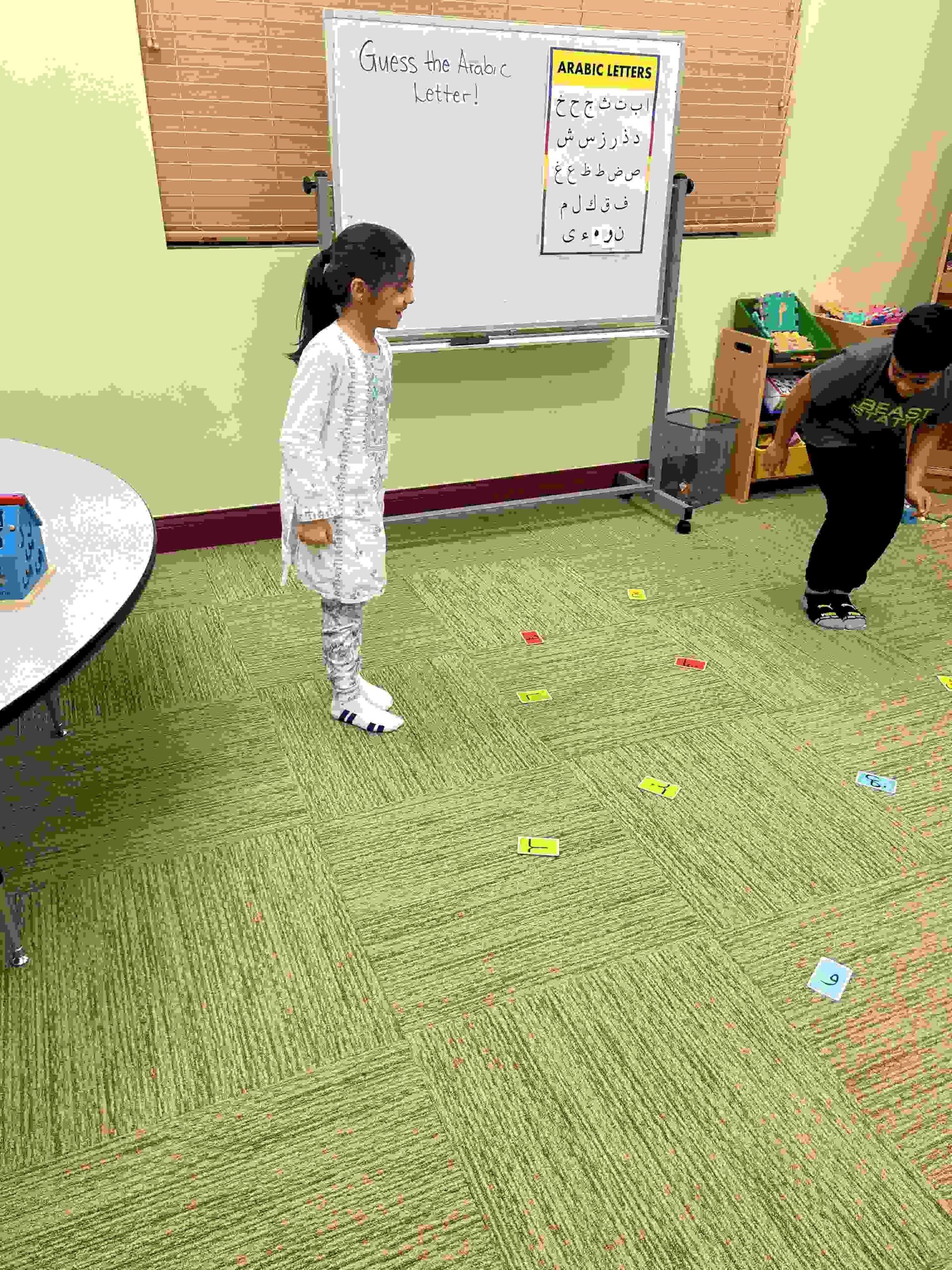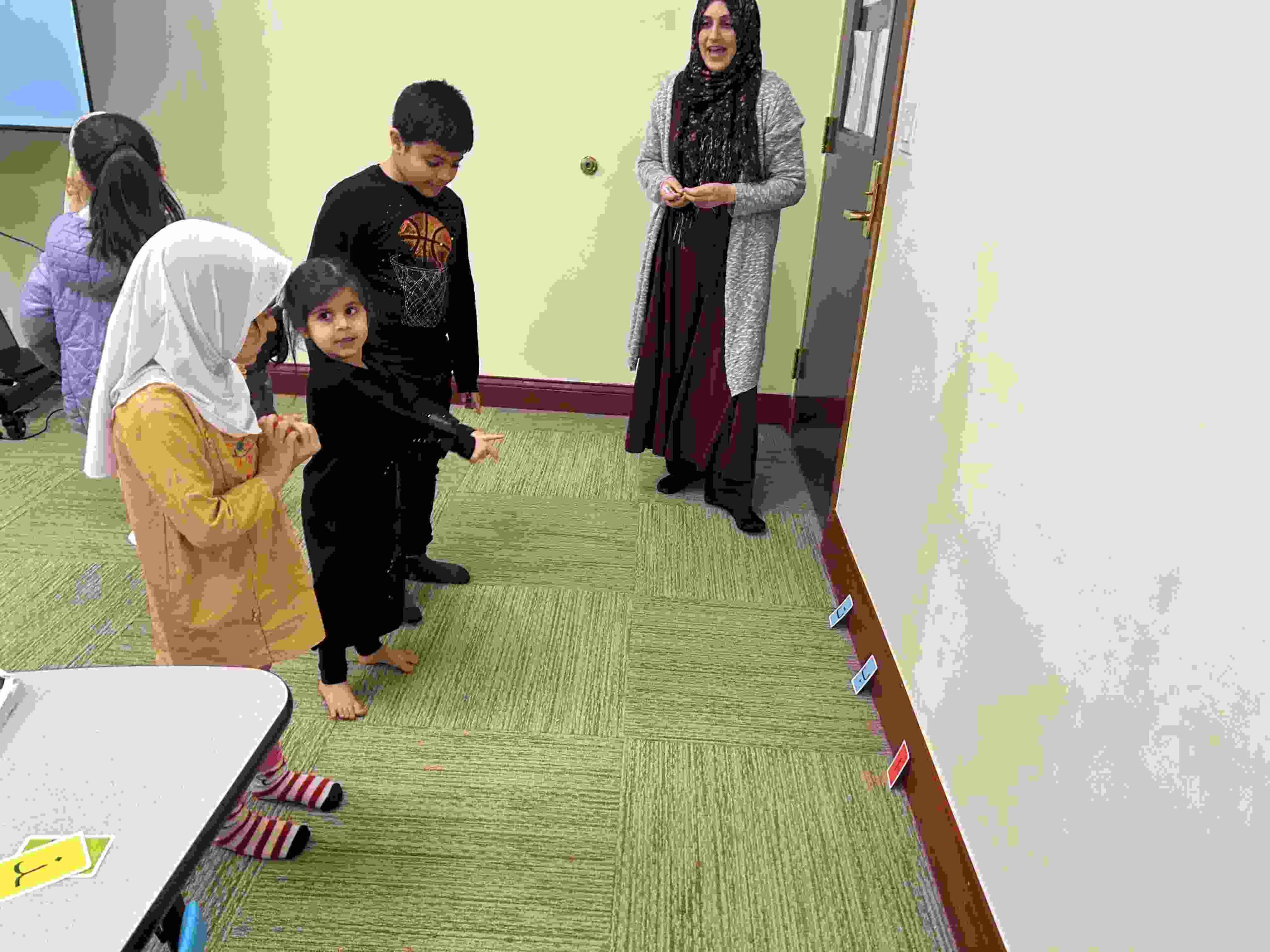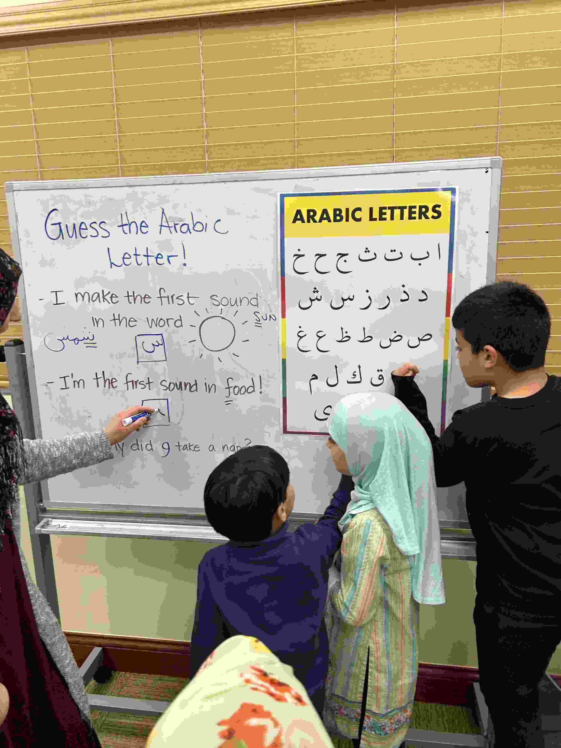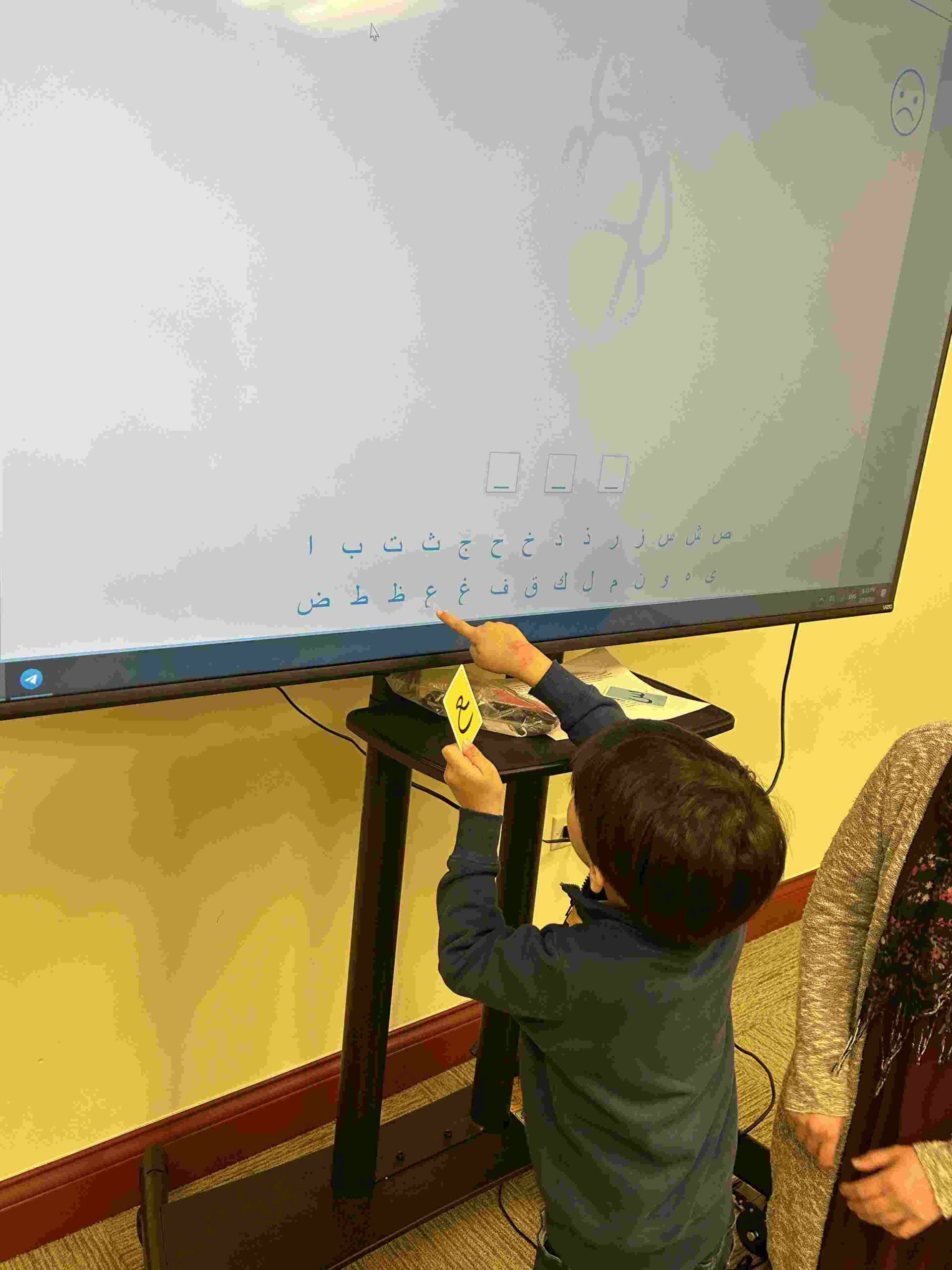HAMZA: Kids were introduced to Hamza with a short poem and story to demonstrate how it’s a special letter that doesn’t change its shape but can be found on its own or sitting on top of or below other letters.