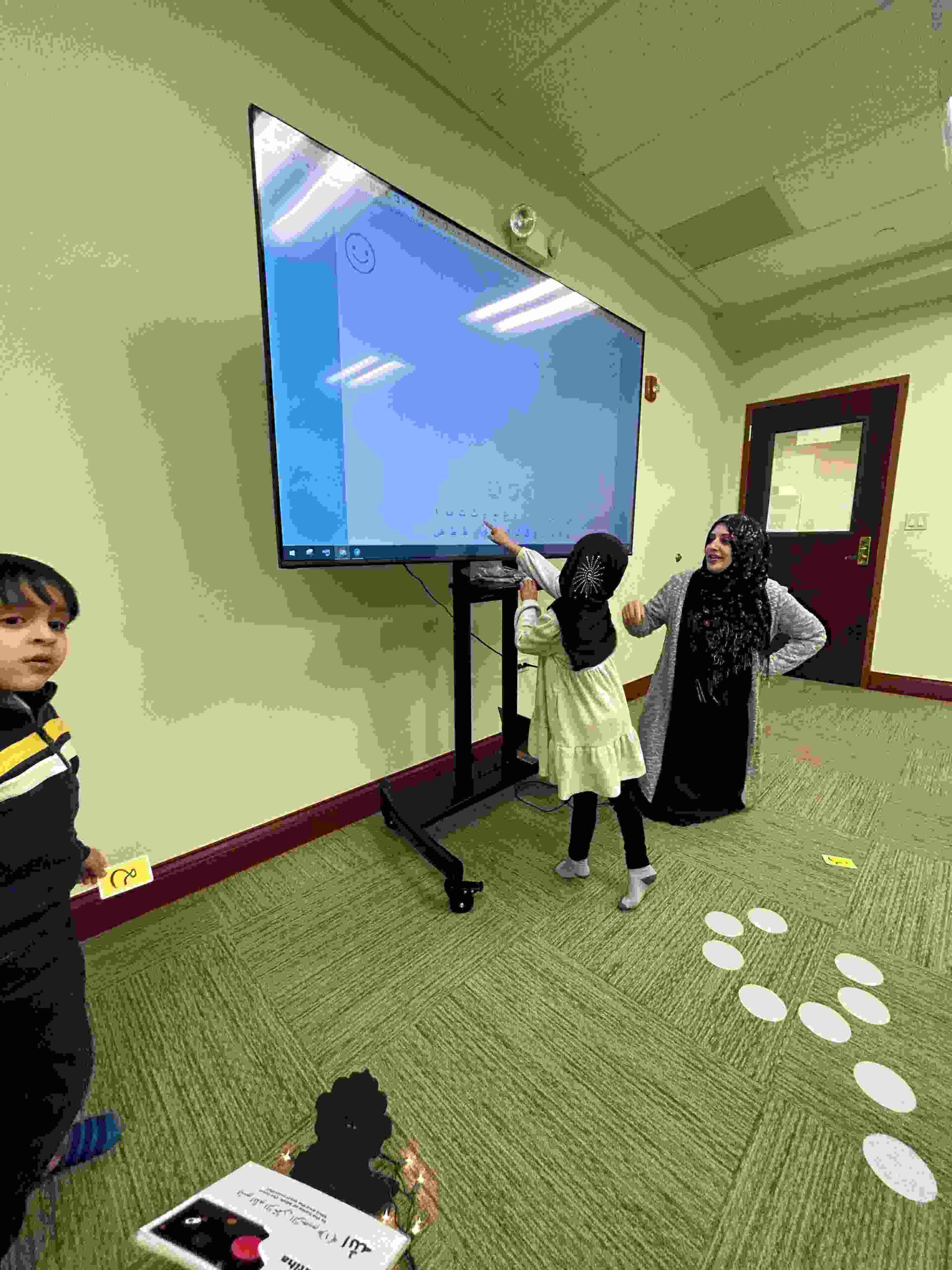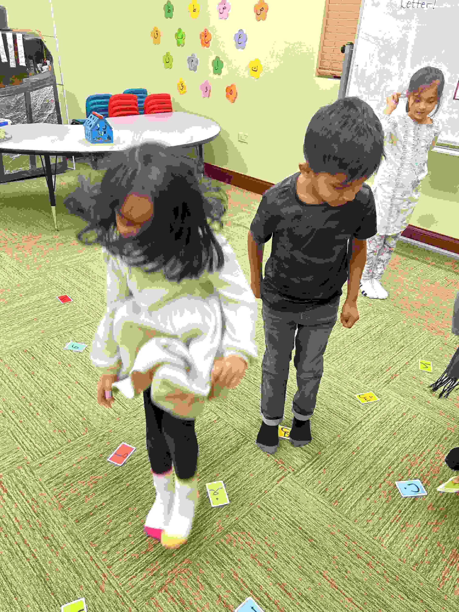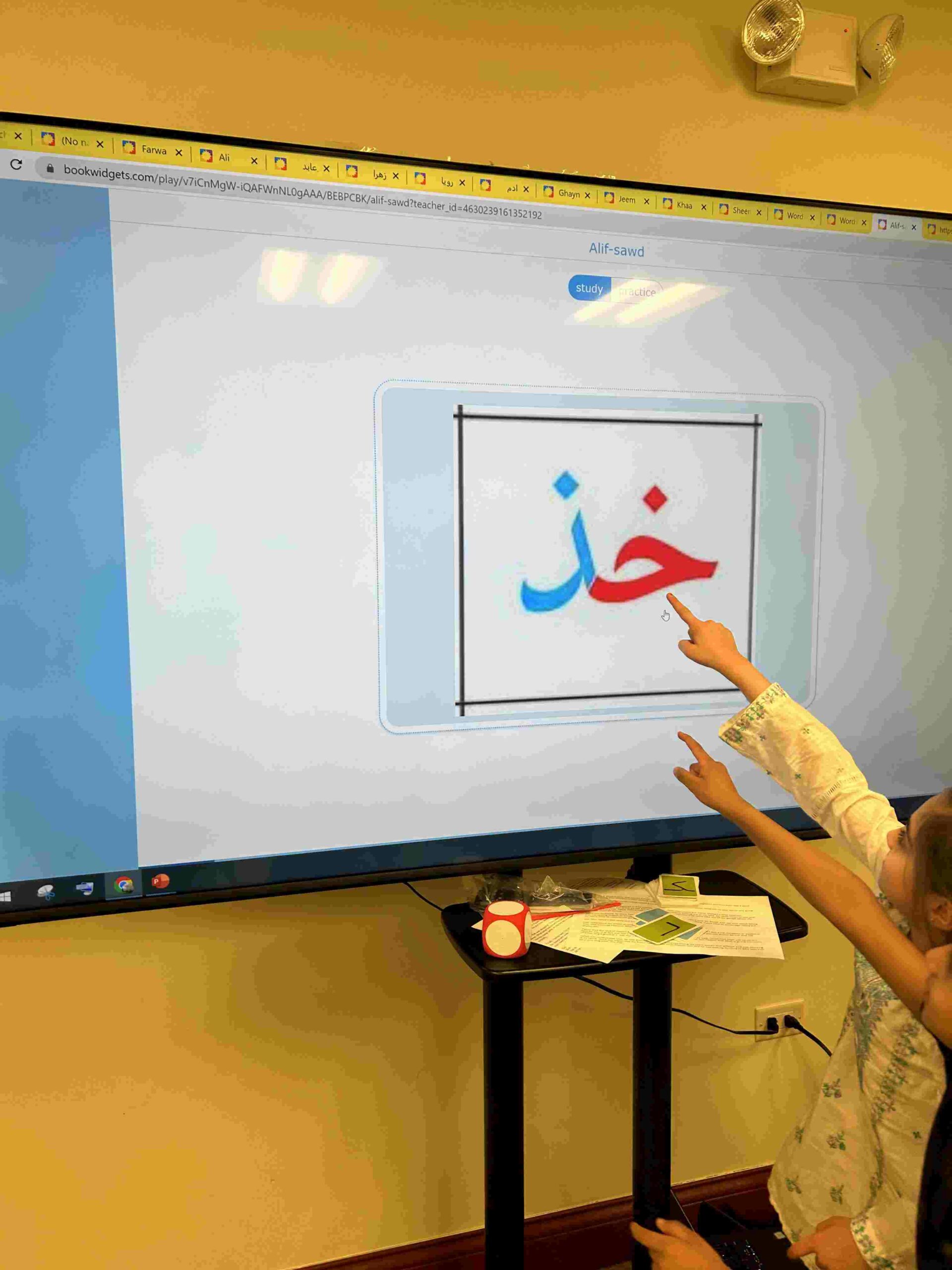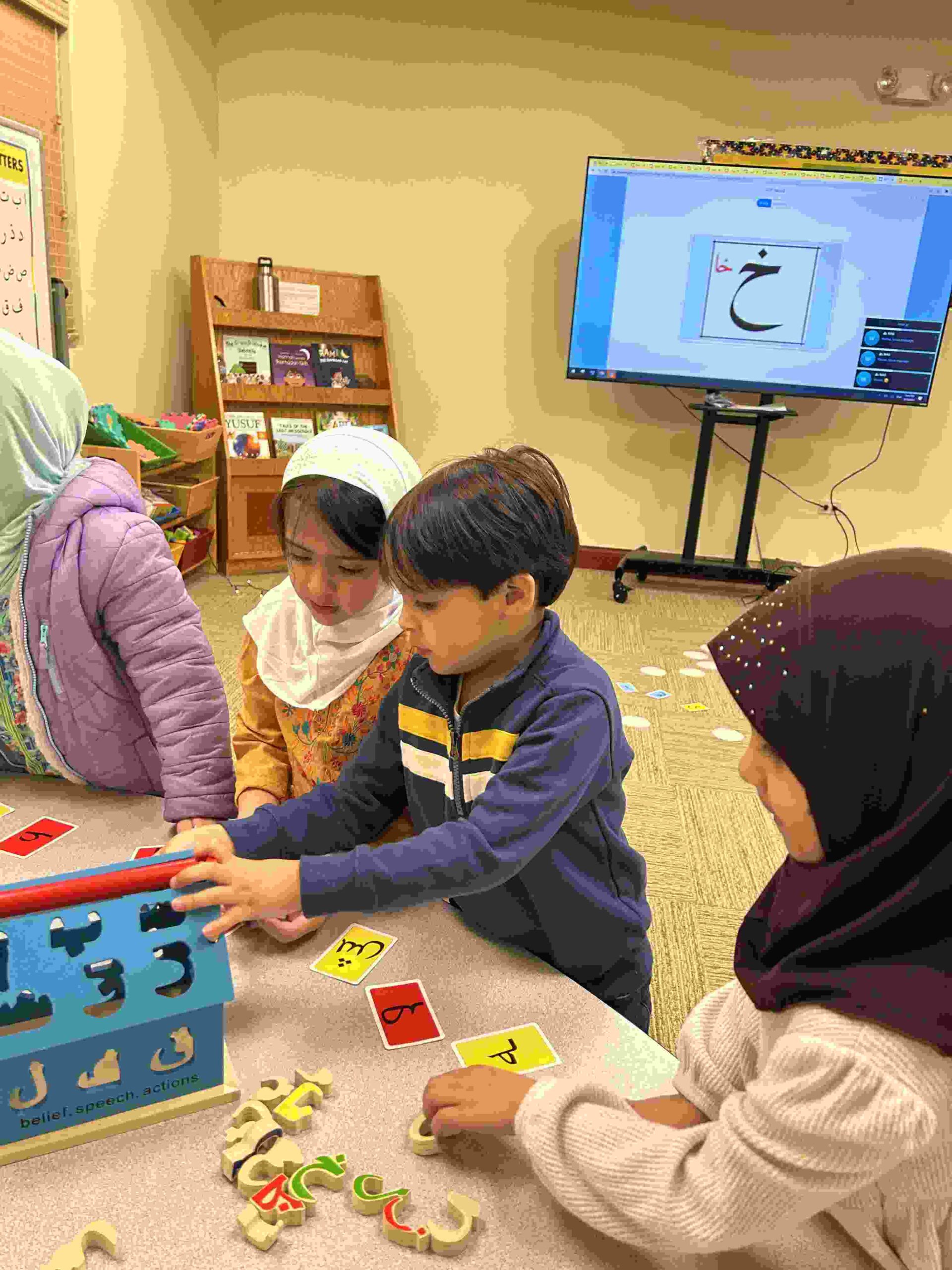 HAMZA: Kids were introduced to Hamza with a short poem and story to demonstrate how it’s a special letter that doesn’t change its shape but can be found on its own or sitting on top of or below other letters.