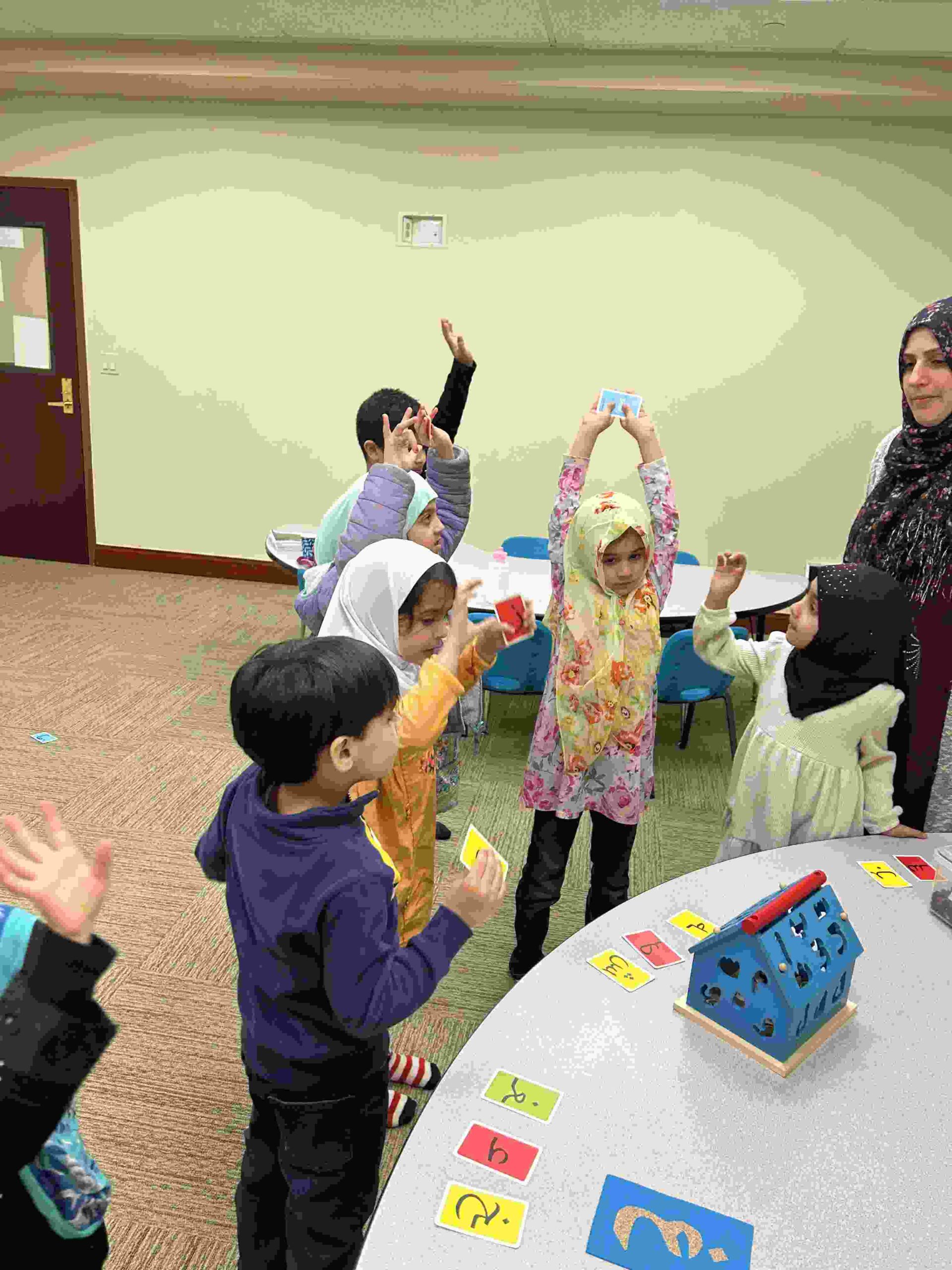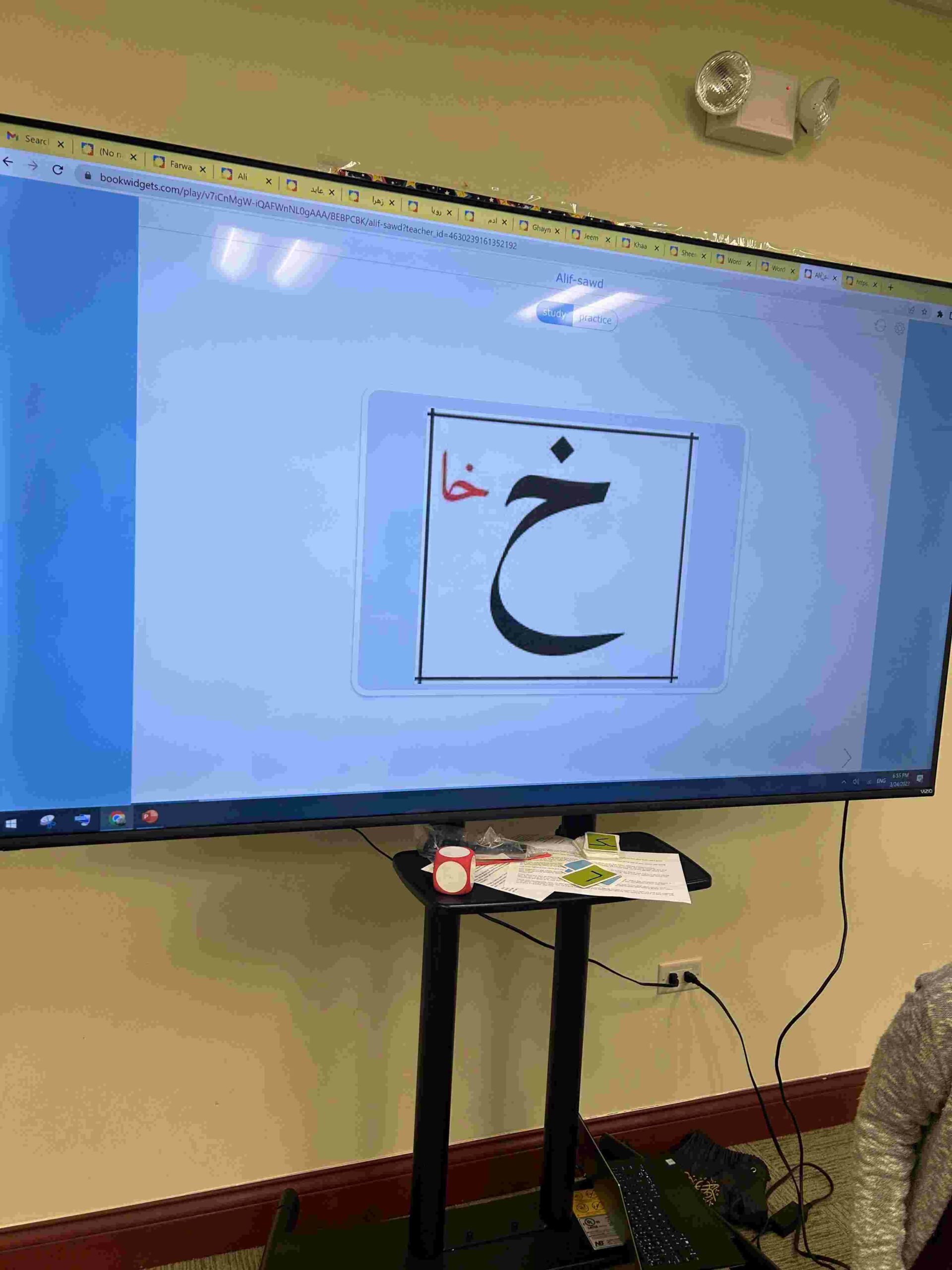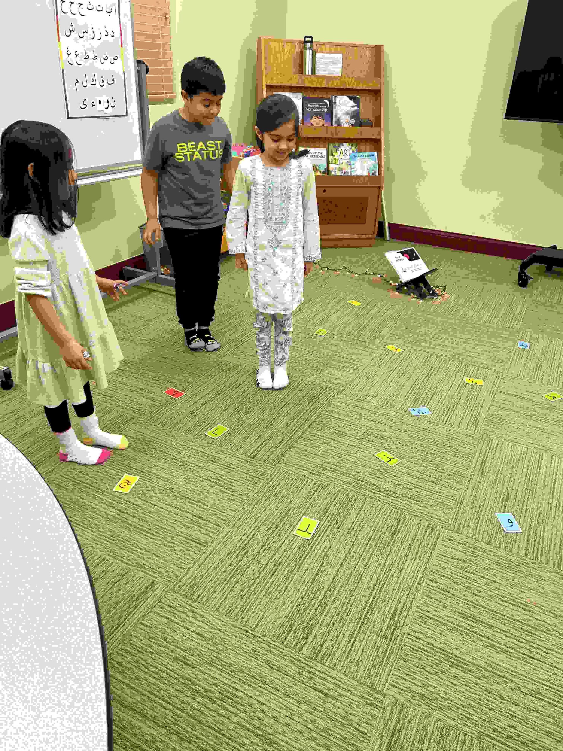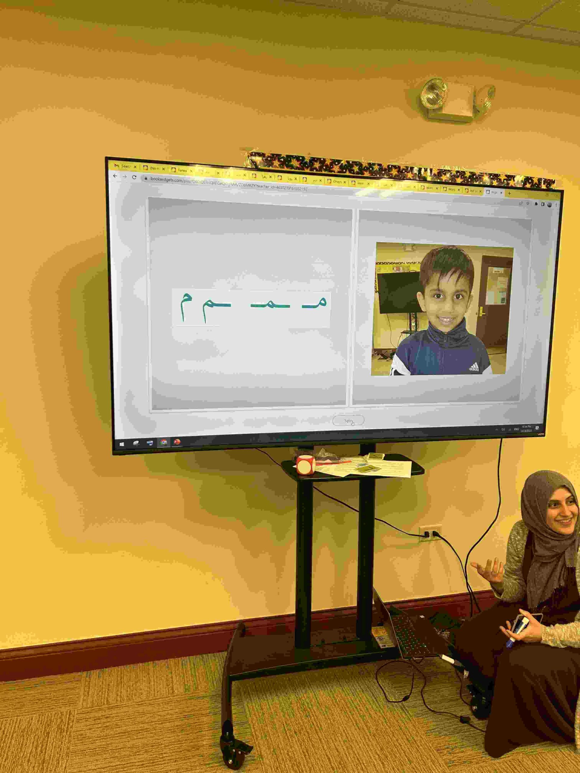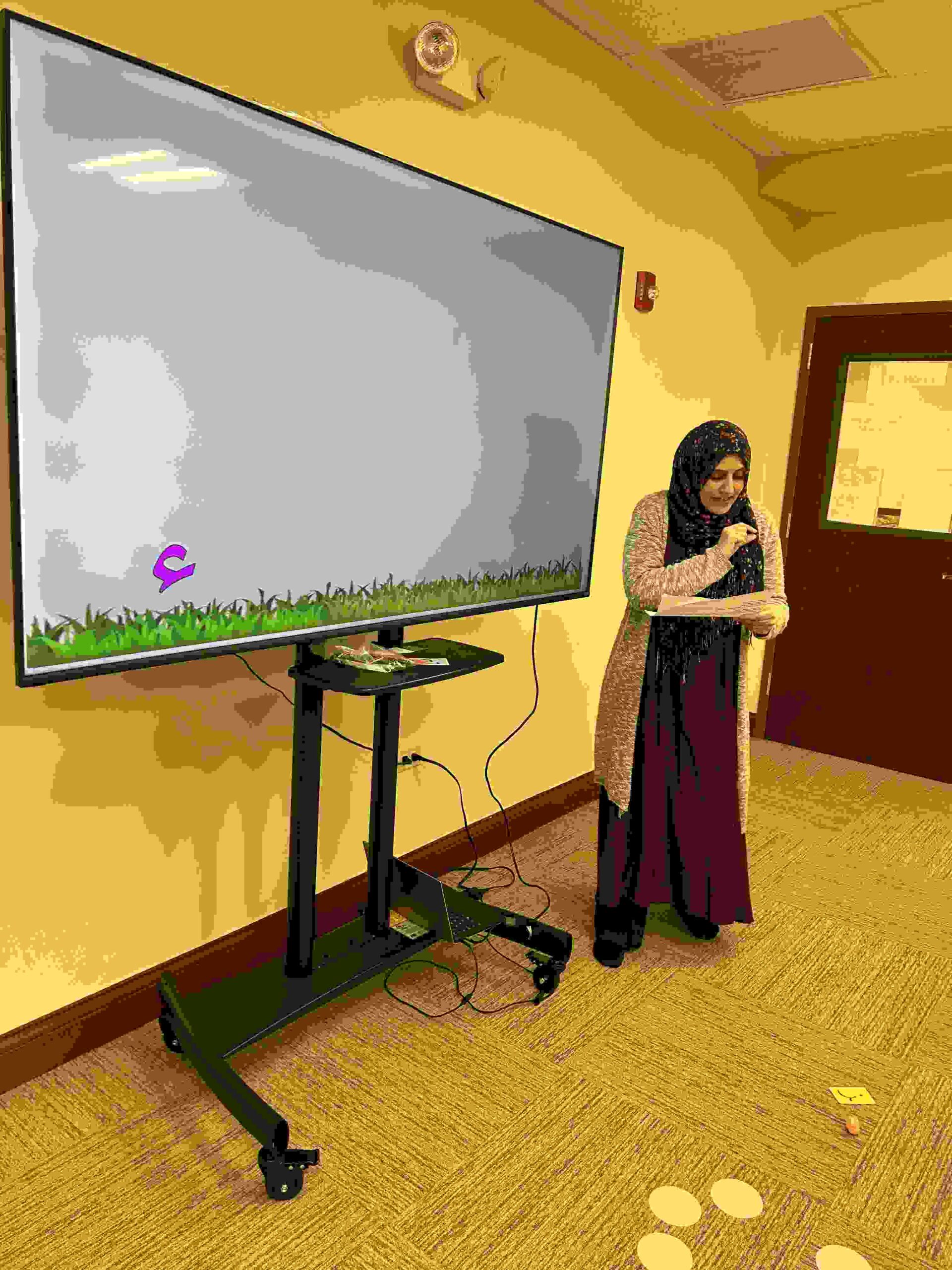 HAMZA: Kids were introduced to Hamza with a short poem and story to demonstrate how it’s a special letter that doesn’t change its shape but can be found on its own or sitting on top of or below other letters.