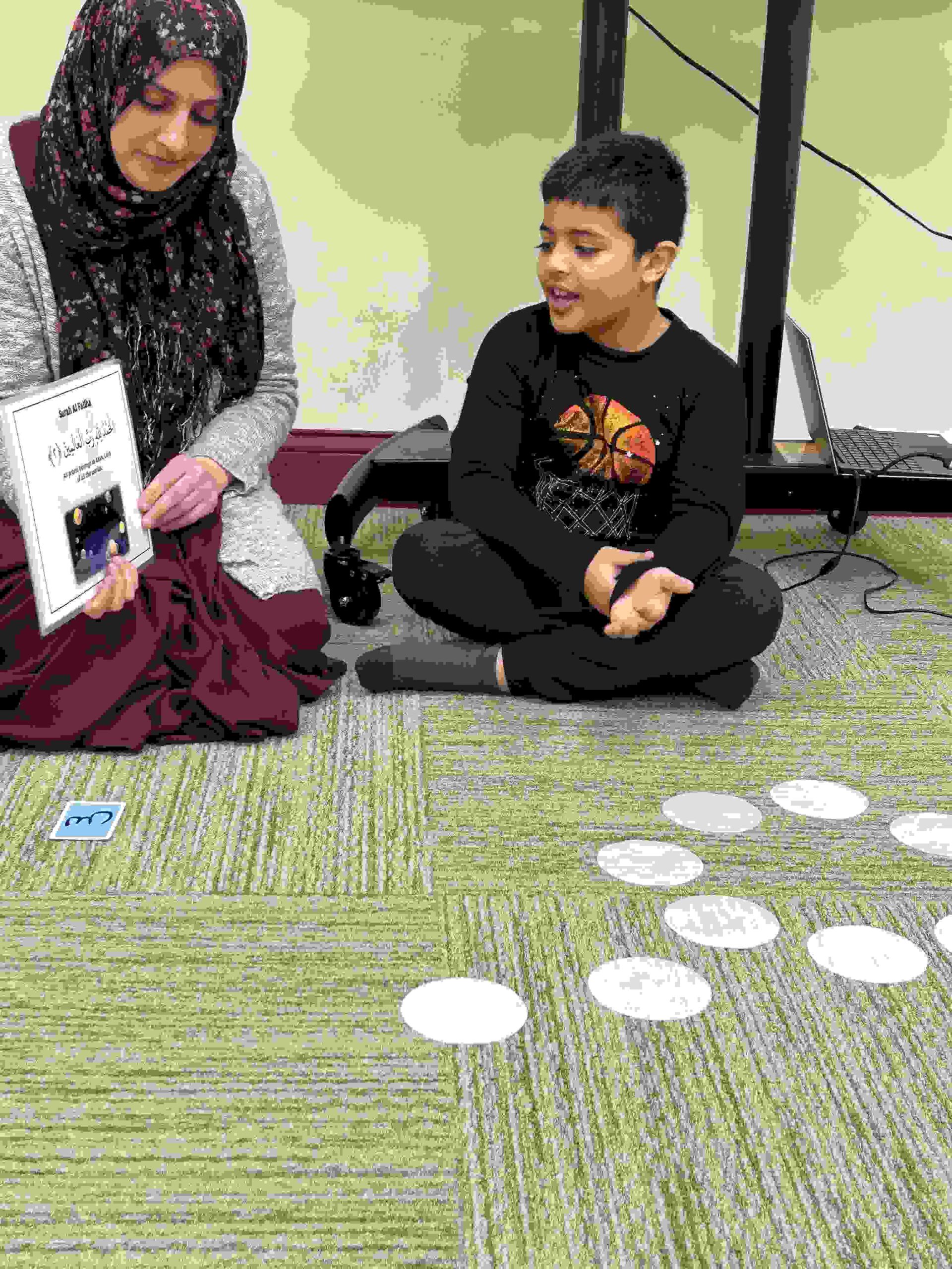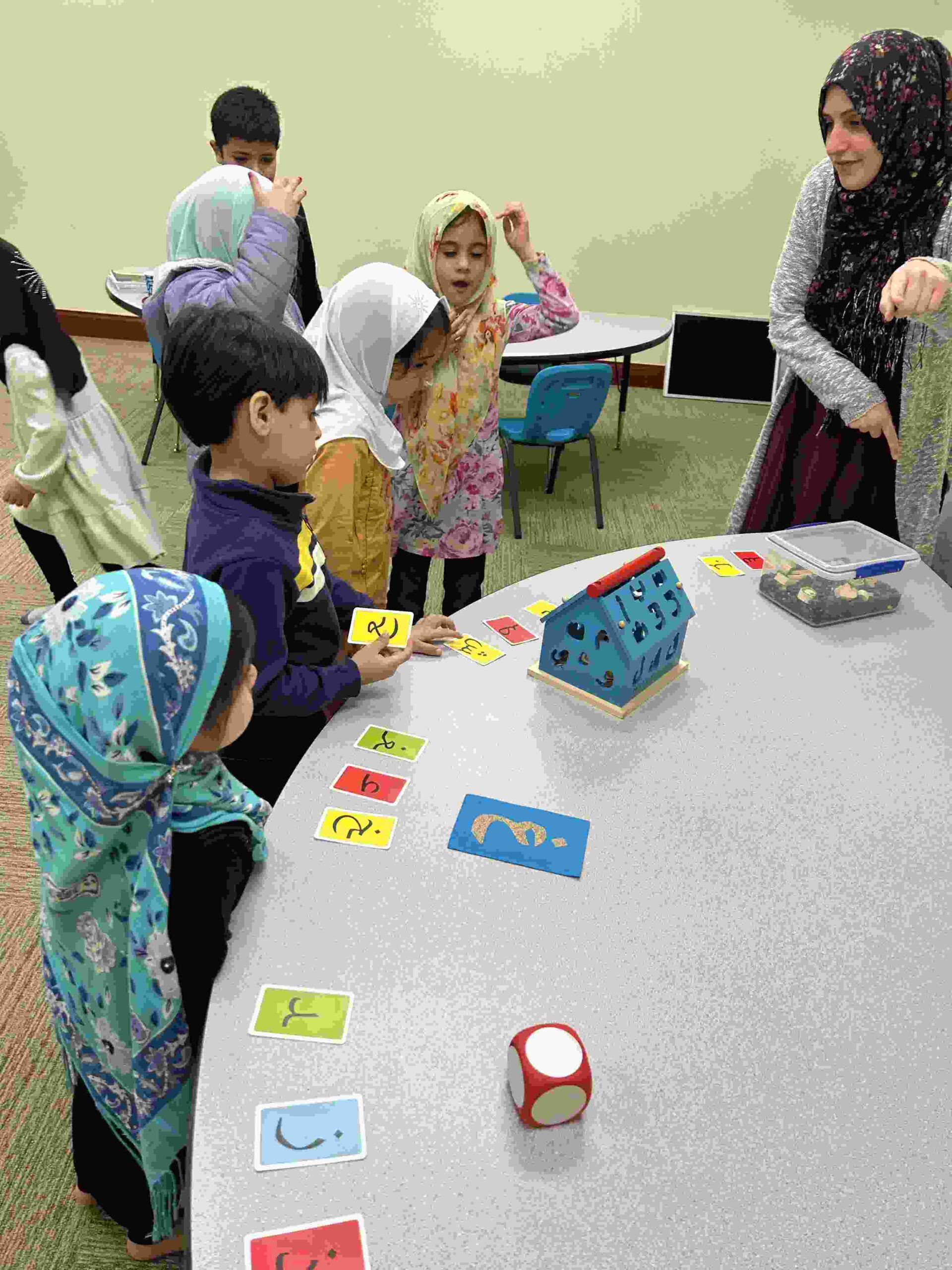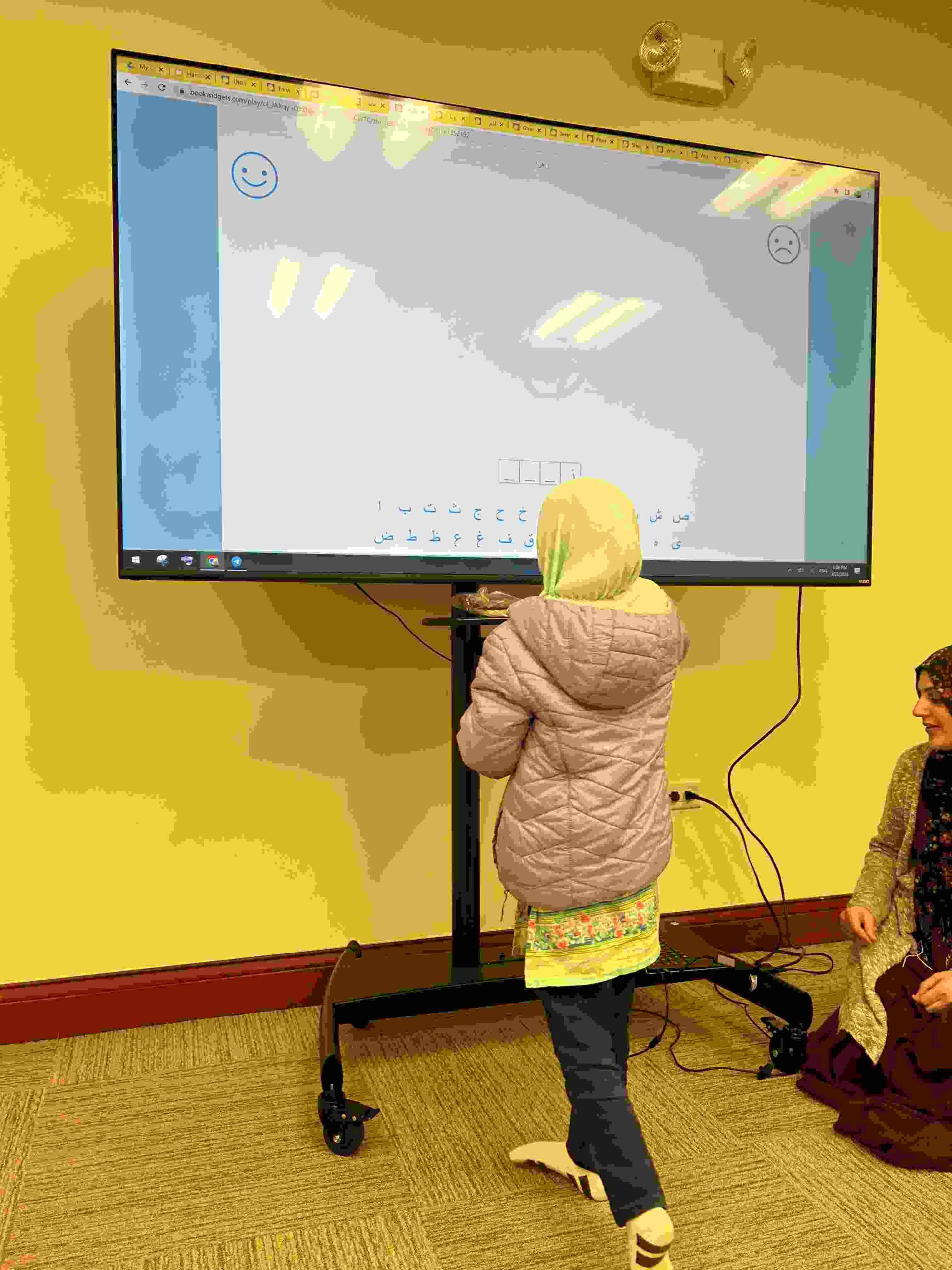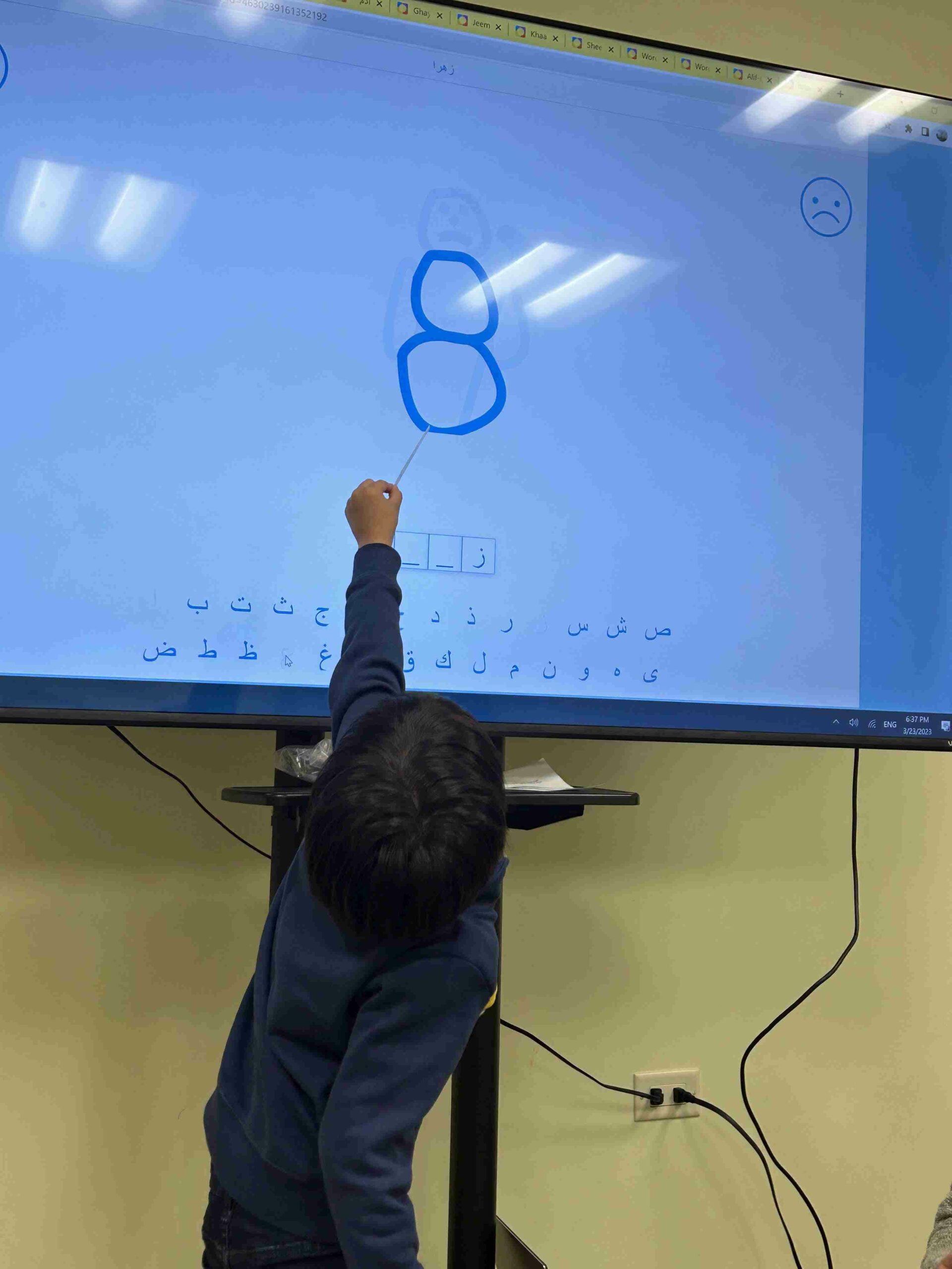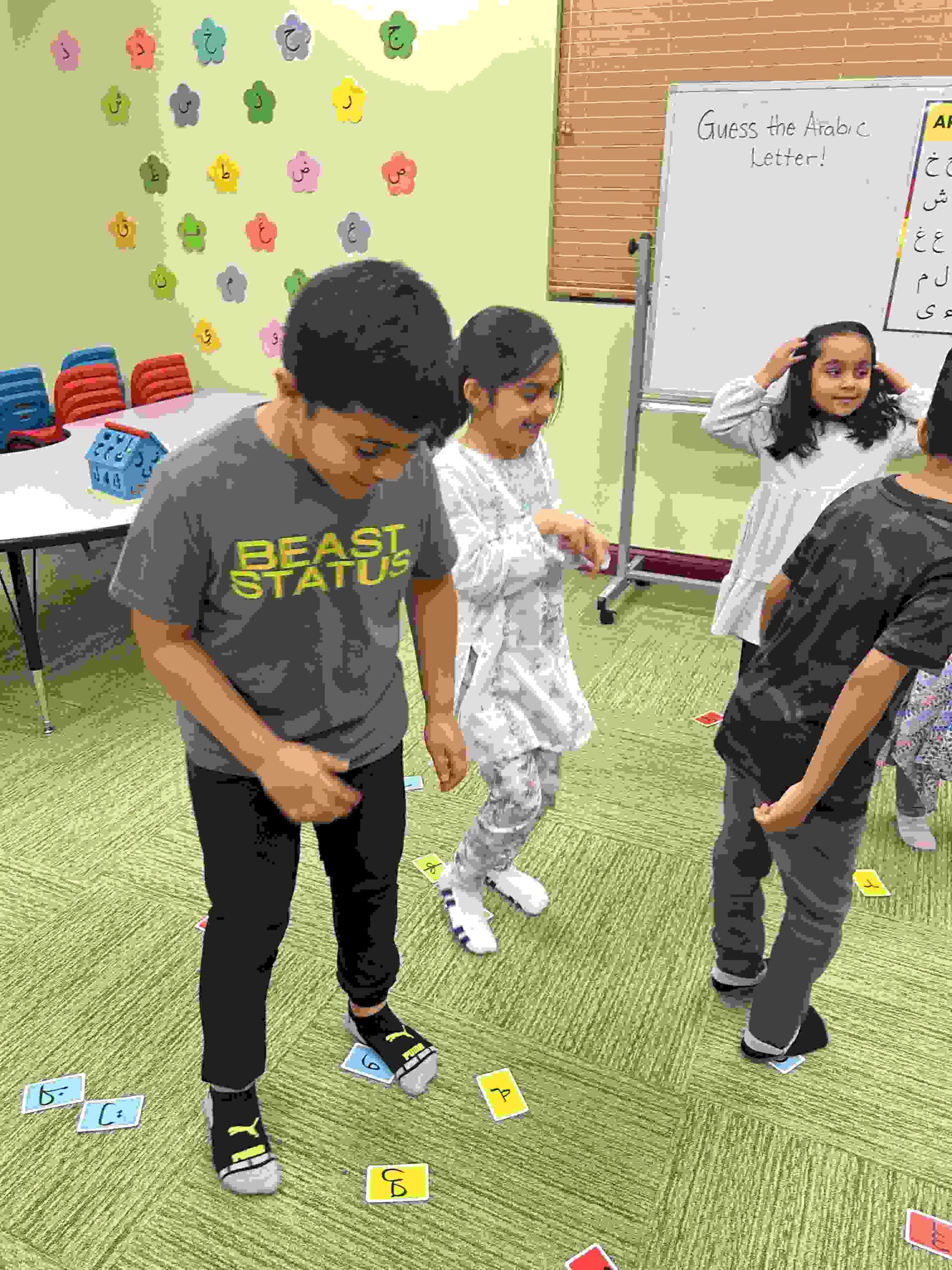 HAMZA: Kids were introduced to Hamza with a short poem and story to demonstrate how it’s a special letter that doesn’t change its shape but can be found on its own or sitting on top of or below other letters.