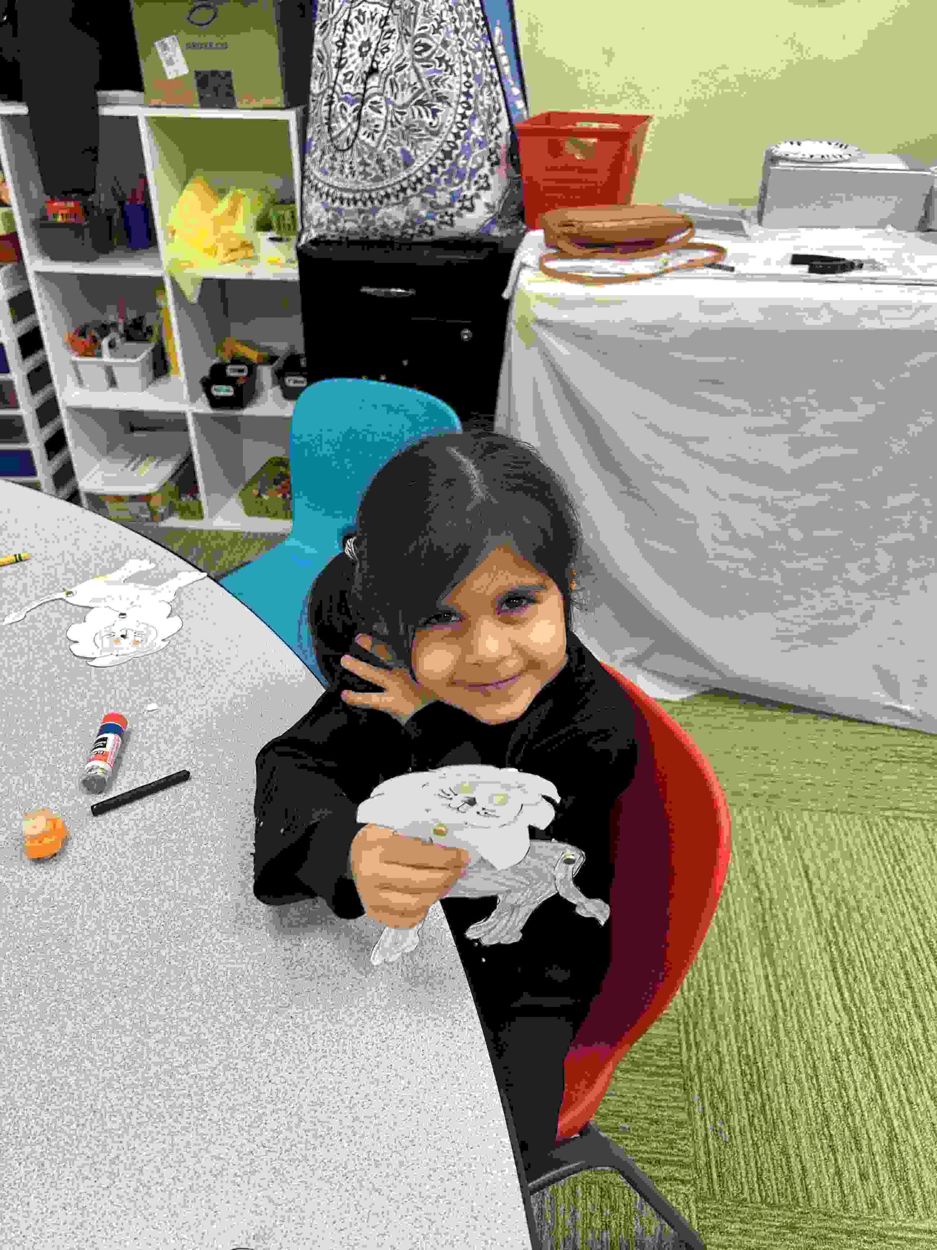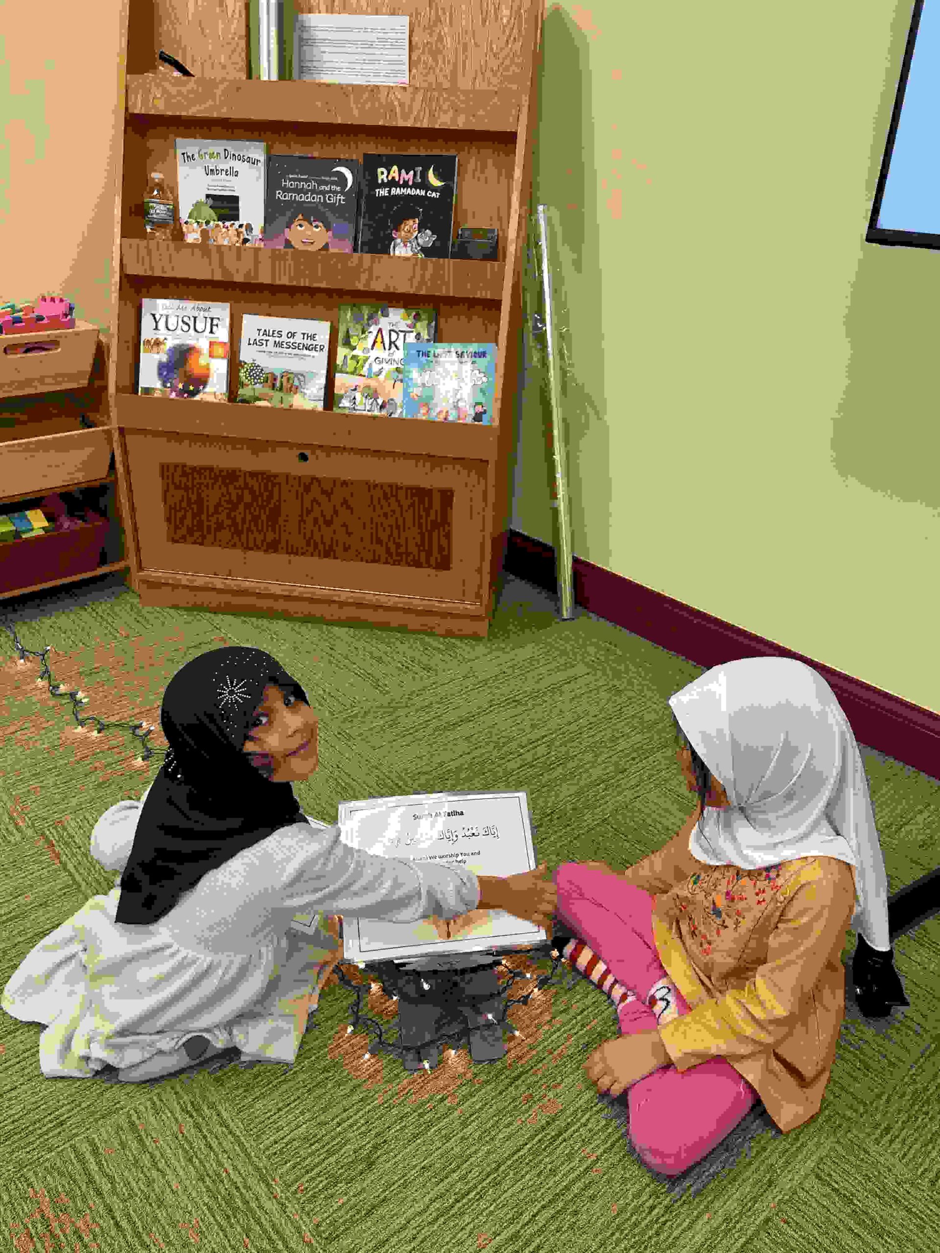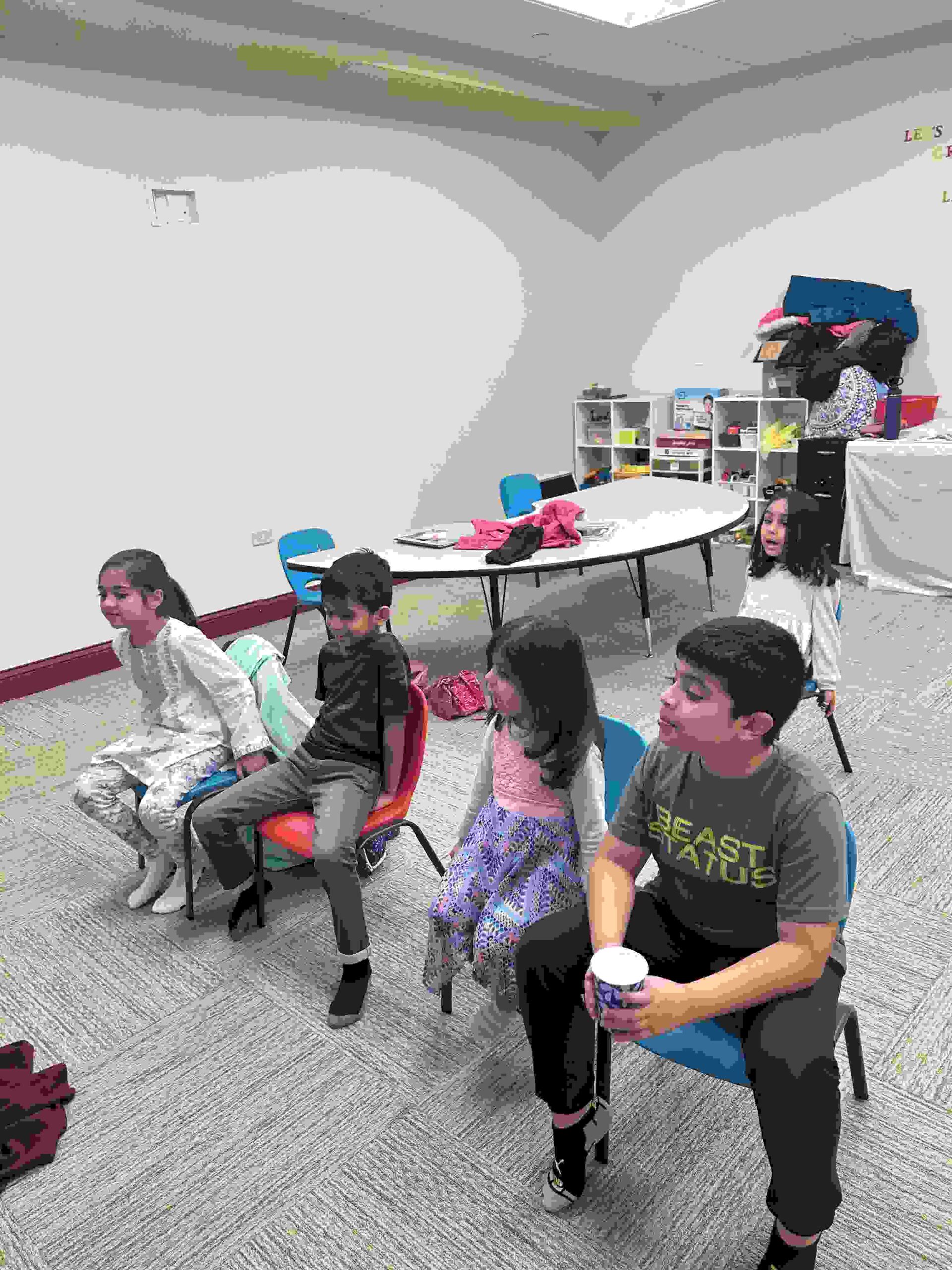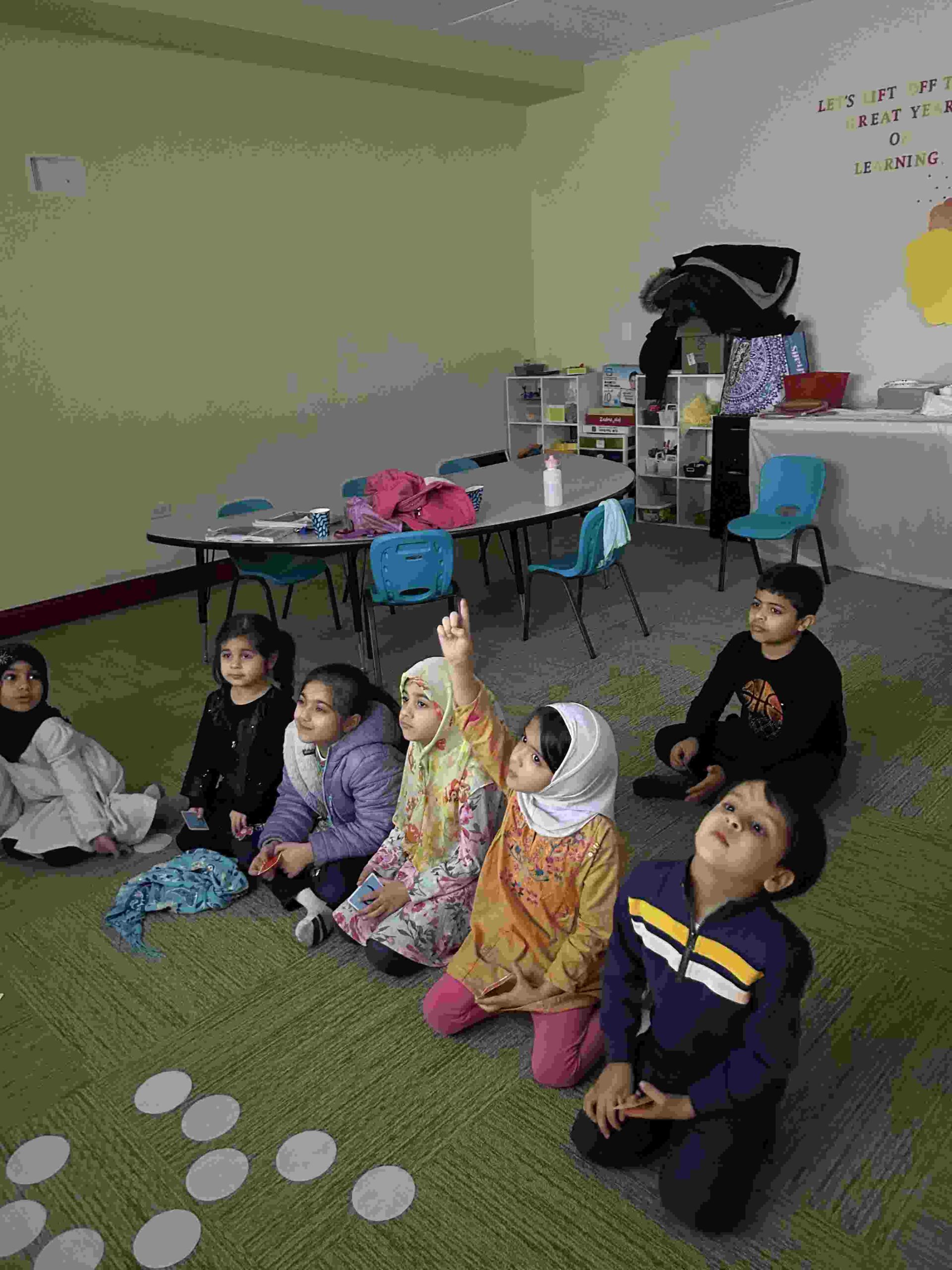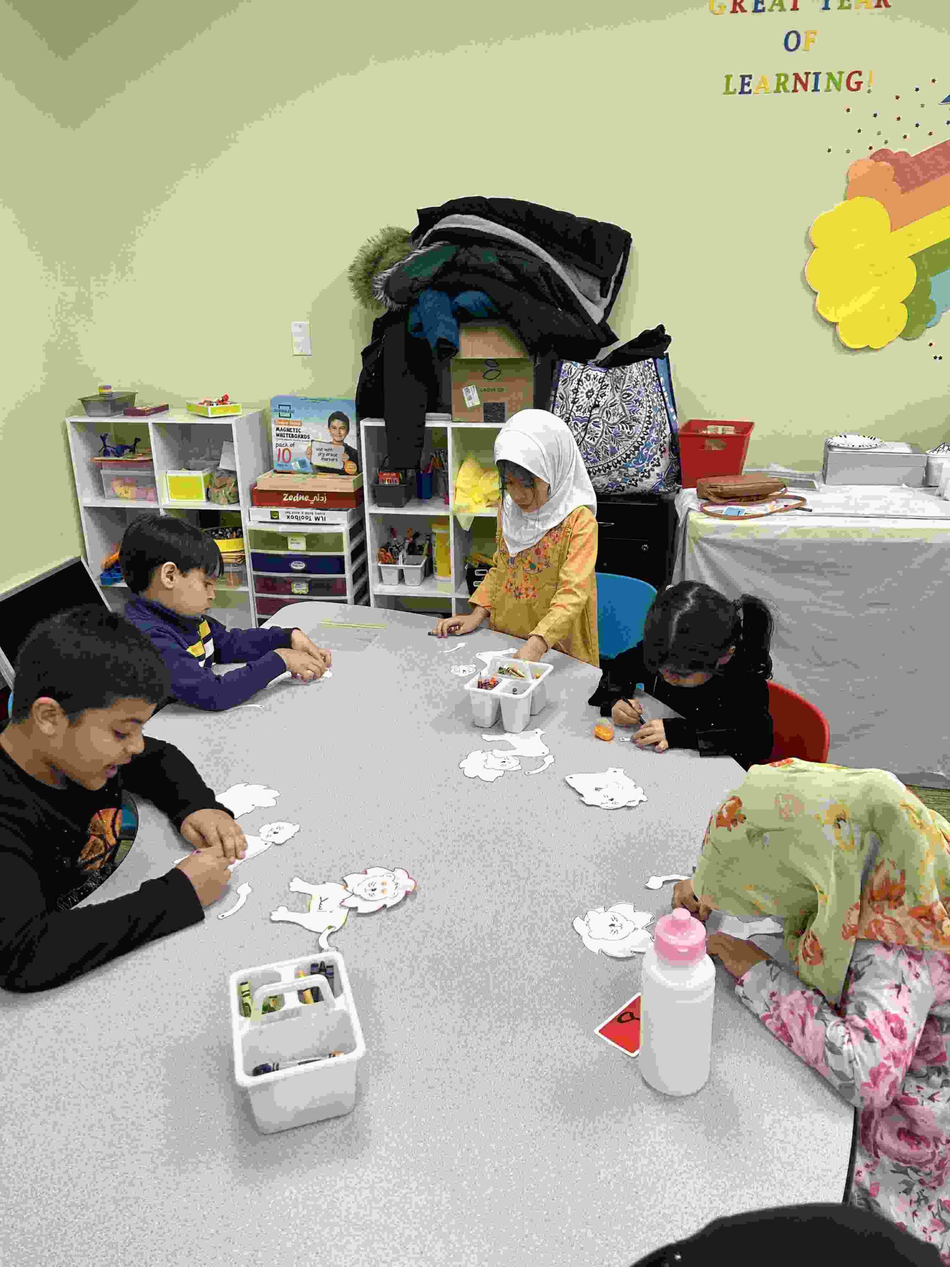HAMZA: Kids were introduced to Hamza with a short poem and story to demonstrate how it’s a special letter that doesn’t change its shape but can be found on its own or sitting on top of or below other letters.
