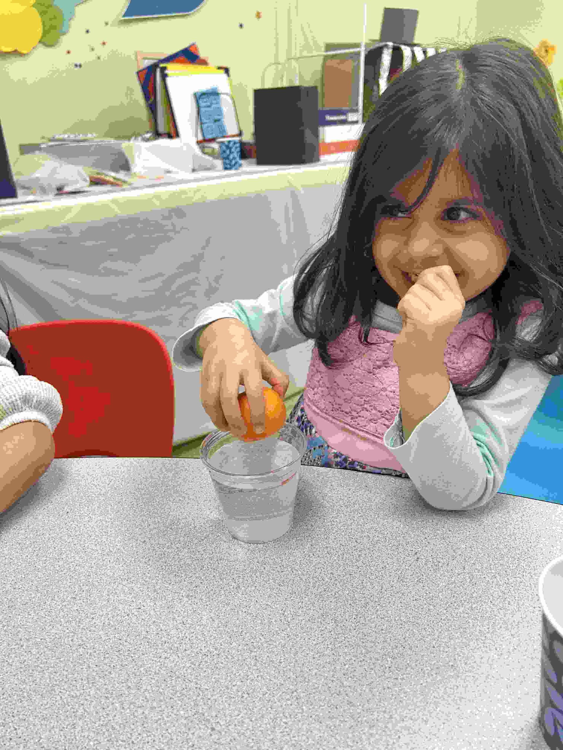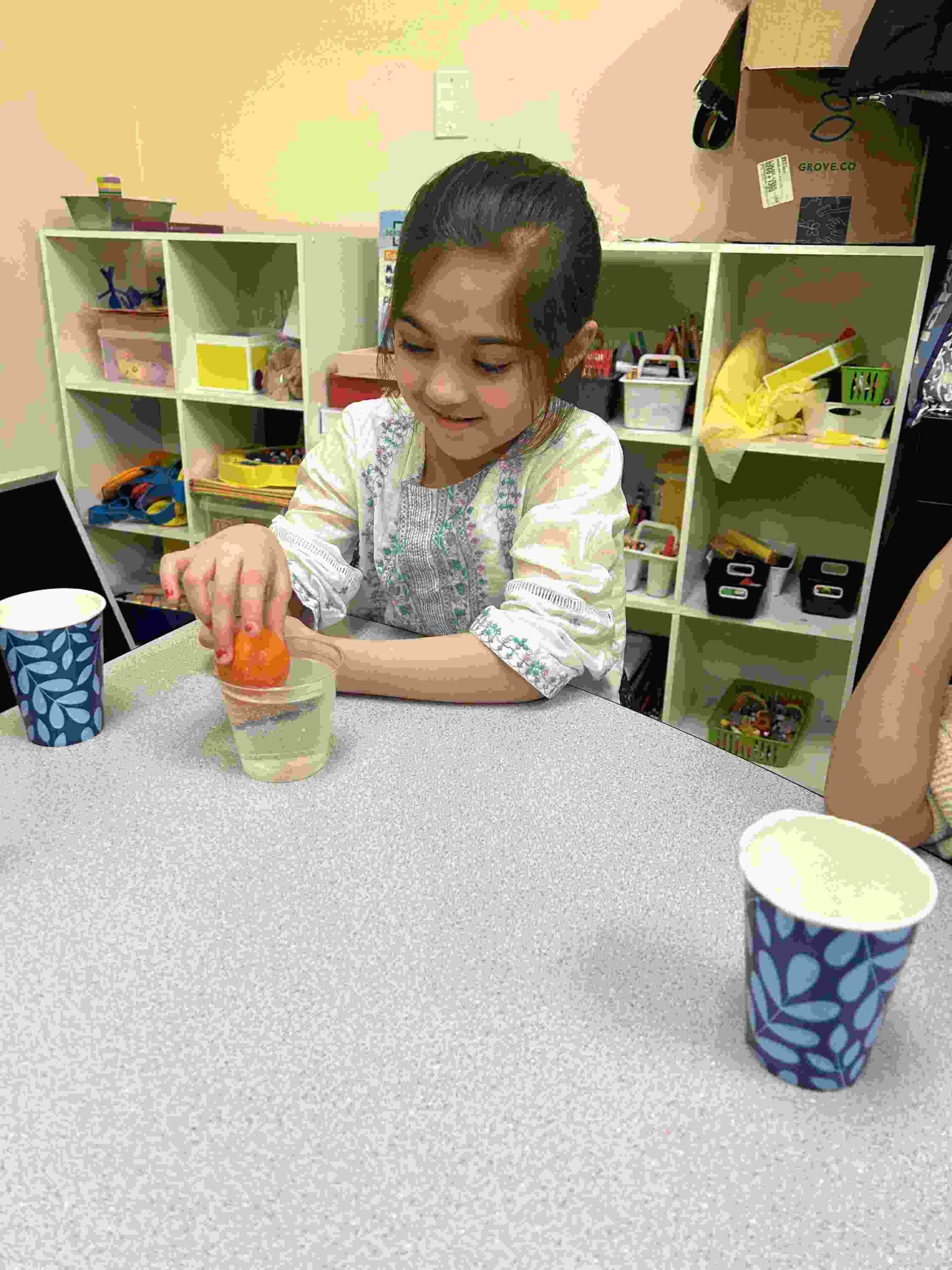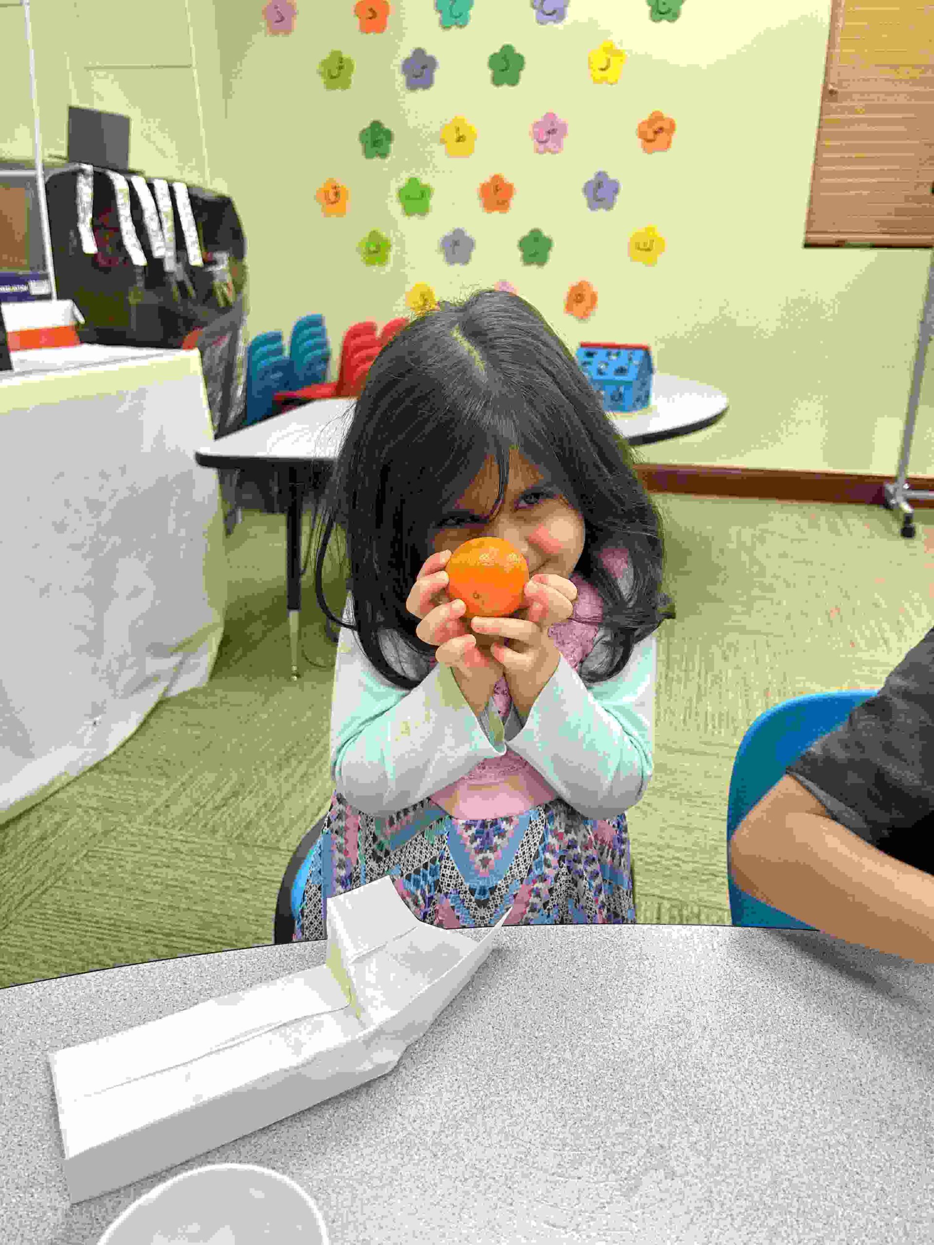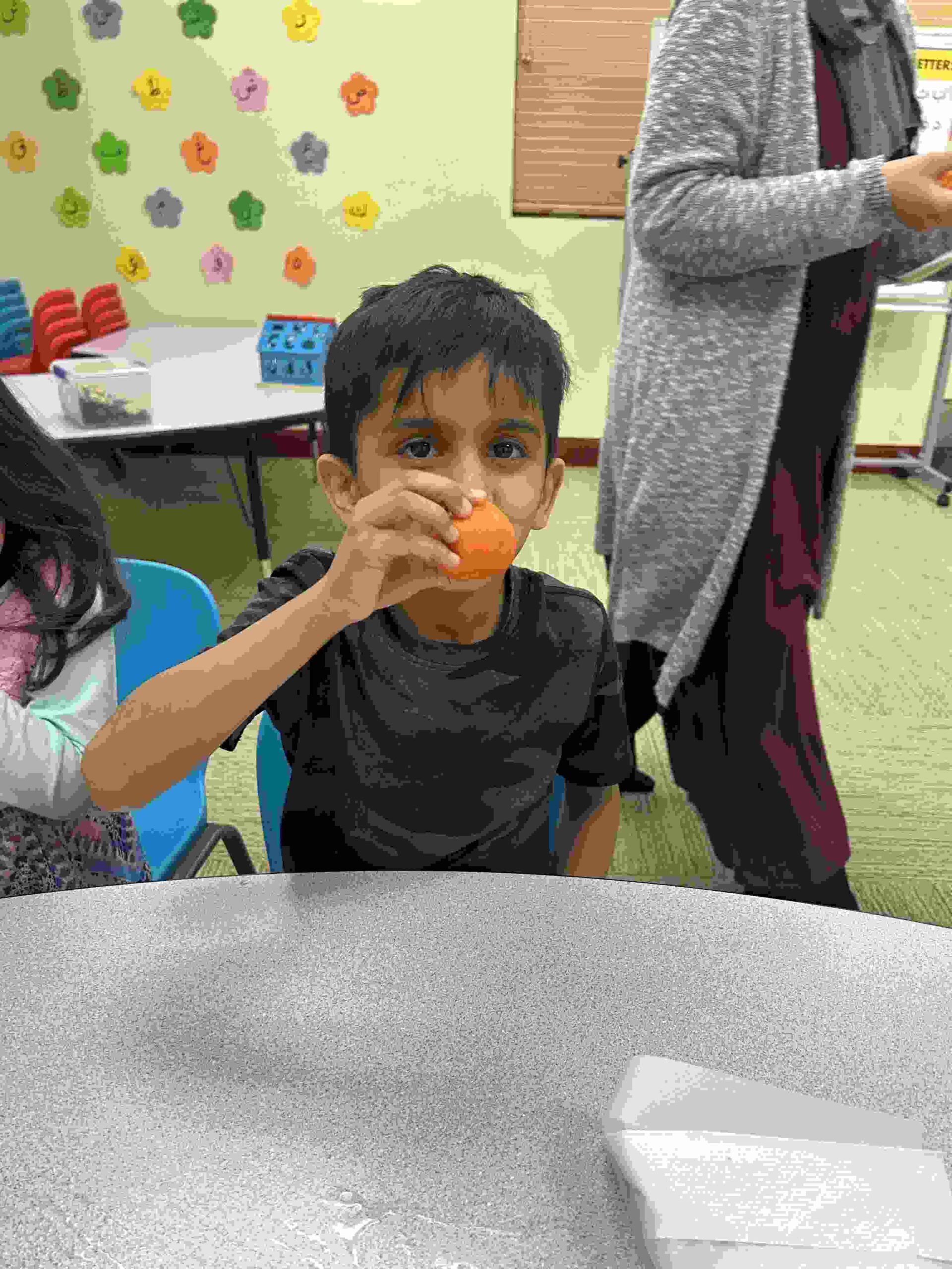 YA: We had a demonstration for the kids with a small cutie. The cutie floats when it has its peel on, and sinked without the peel. We explained to the kids that the orange peel is our certainty and trust in Allah’s guidance. With Allah’s help he will keep us floating and help us even in our most challenging times. Kids each had a turn to think of something personally challenging to them and drop the orange in the water.
