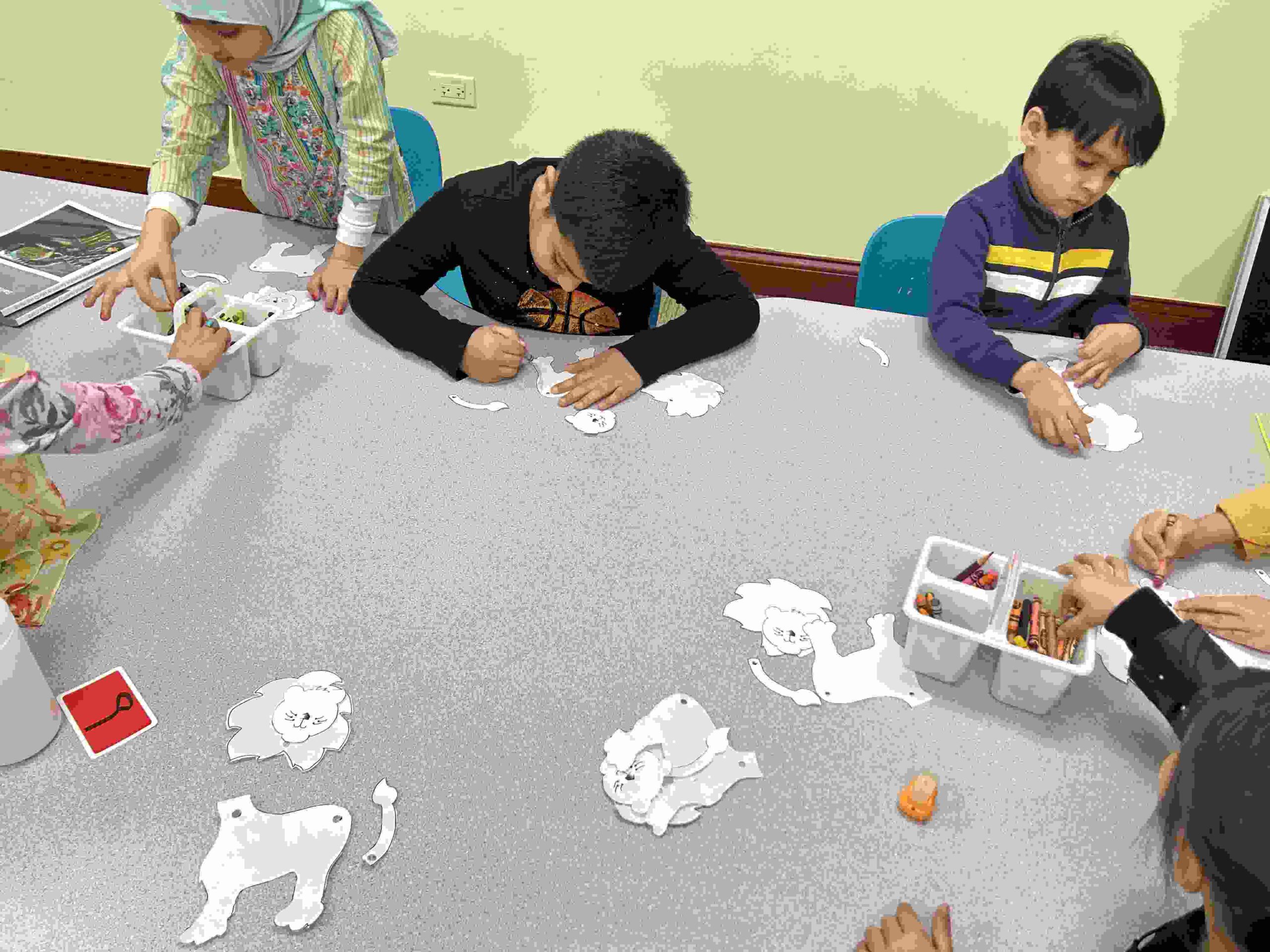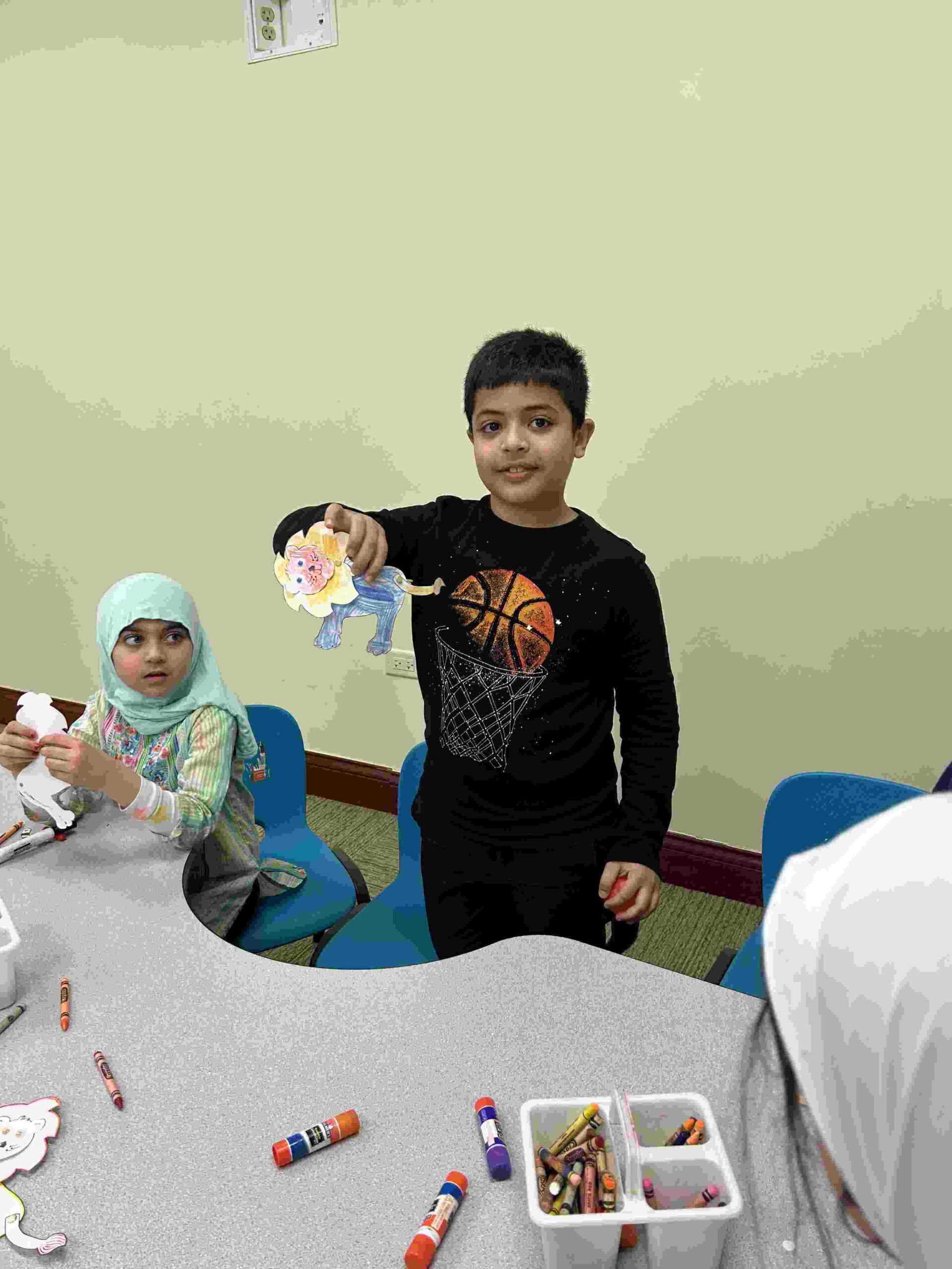 HAMZA: kids had a craft in honor Imam Ali through his title أسد اﻟﻠﻪ which begins with the letter HAMZA.