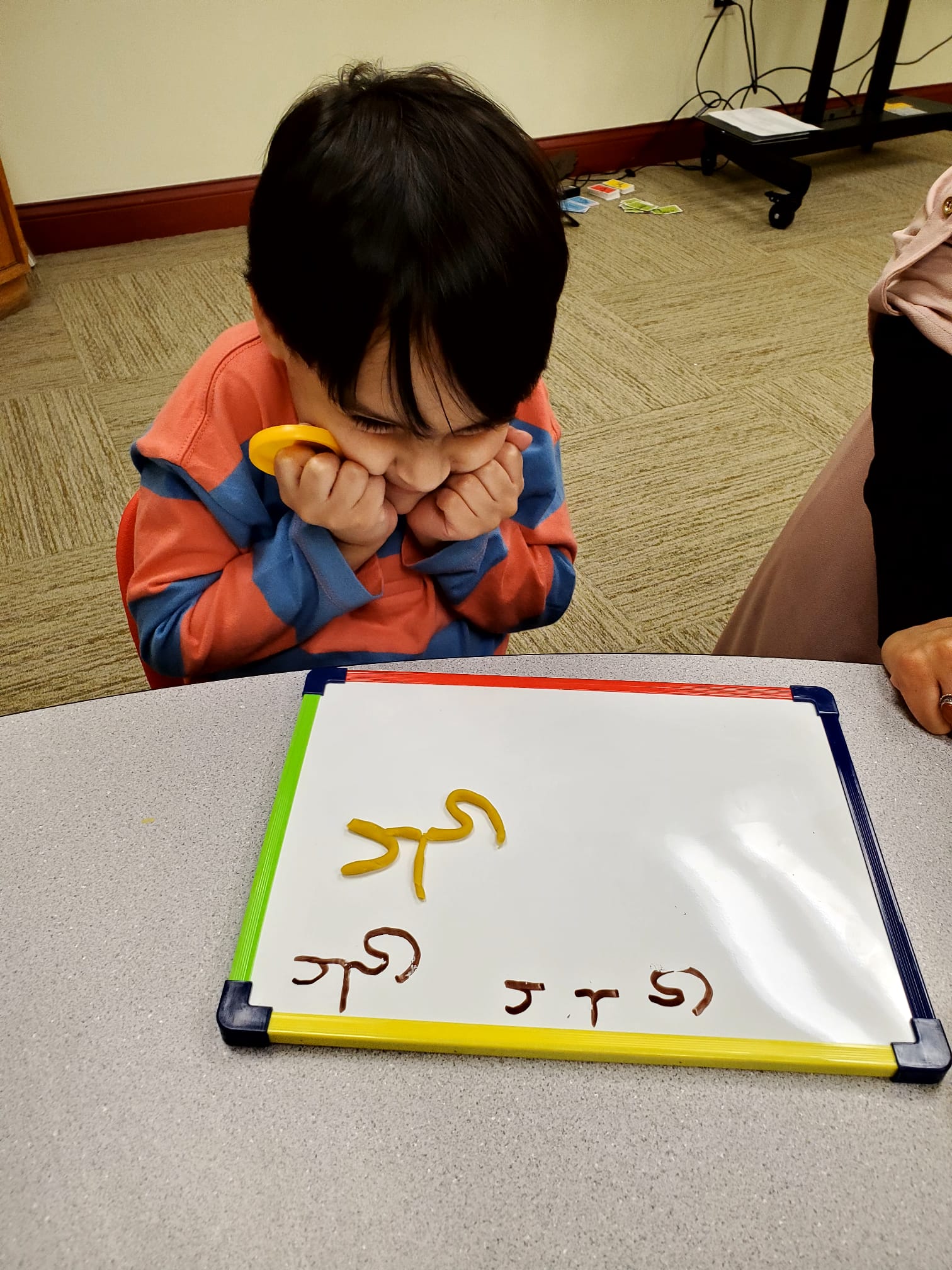 Playdoh activity where kids formed their names and identified how the letters join with one another.