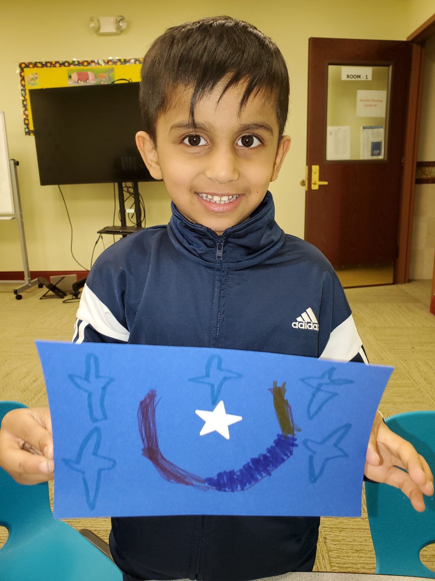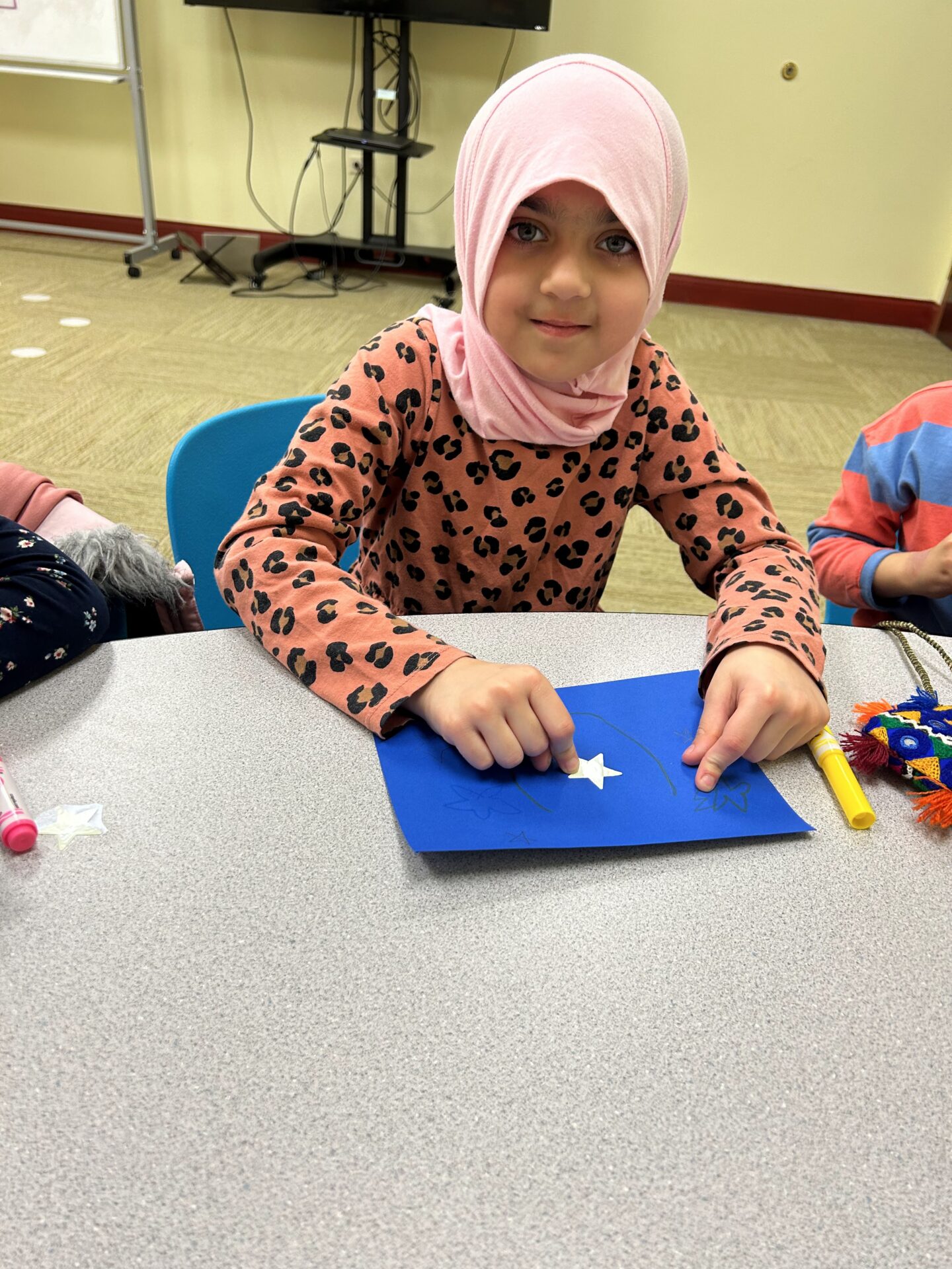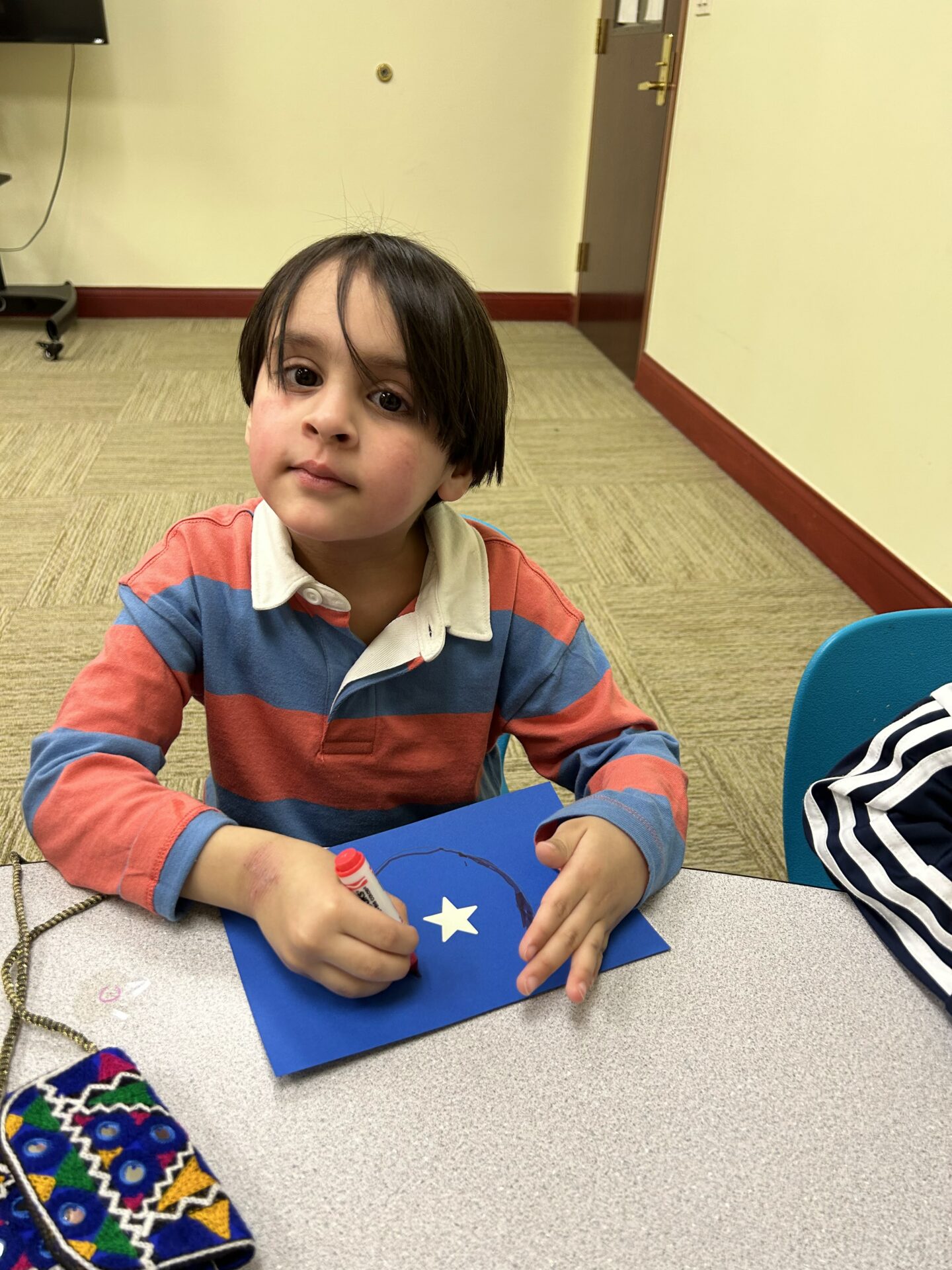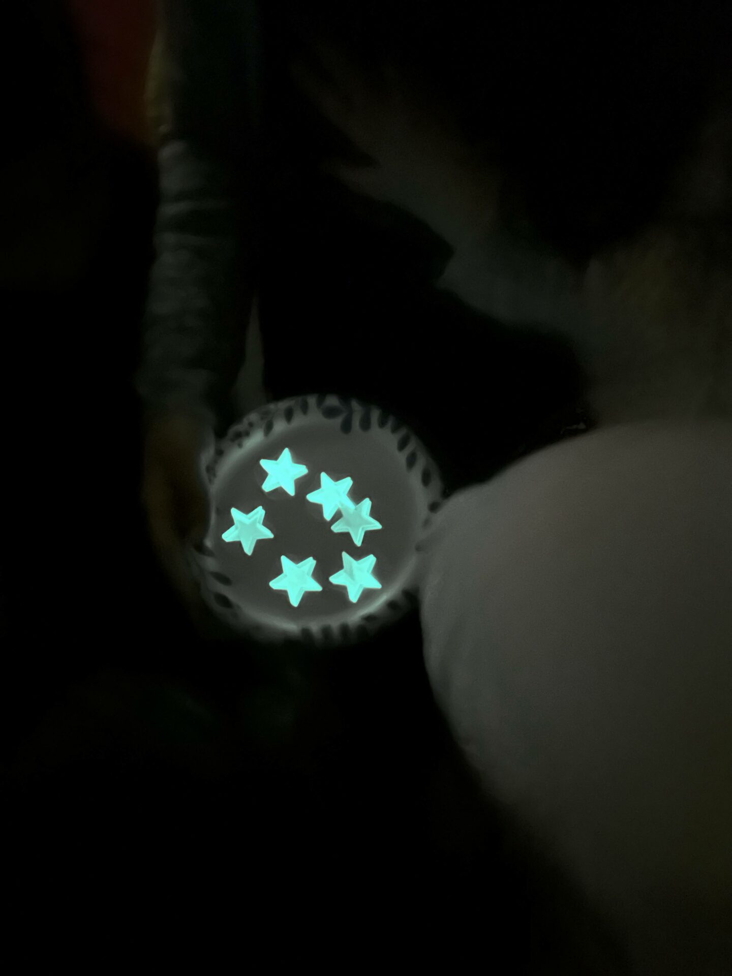 For today’s craft, kids traced or drew their own letter Noon and finished it off with a glow in the dark sticker for the dot.