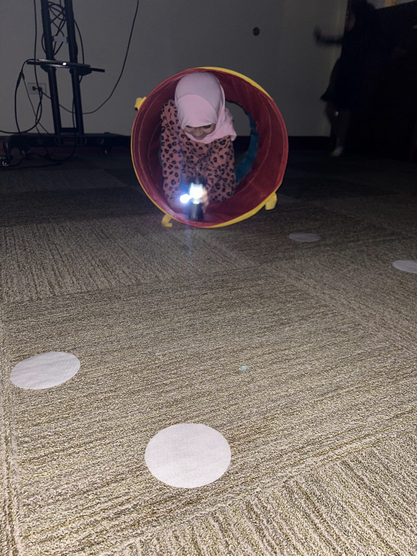 We had the kids run through a maze in the dark and then again with a flashlight. Allah says in the Quran “Allah is the light of the heavens and the Earth” (24:35) We explained to the kids that, just like the light of the flashlight, Allah guides us in our lives.