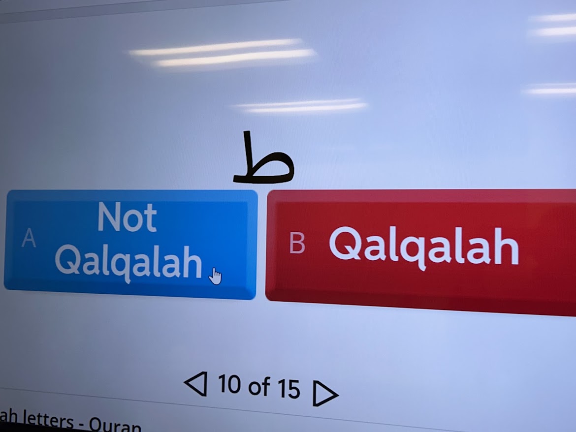 This week, we revised reciting Quranic words with Sukoon, and Qalqalah. We played a few games to practice the words.