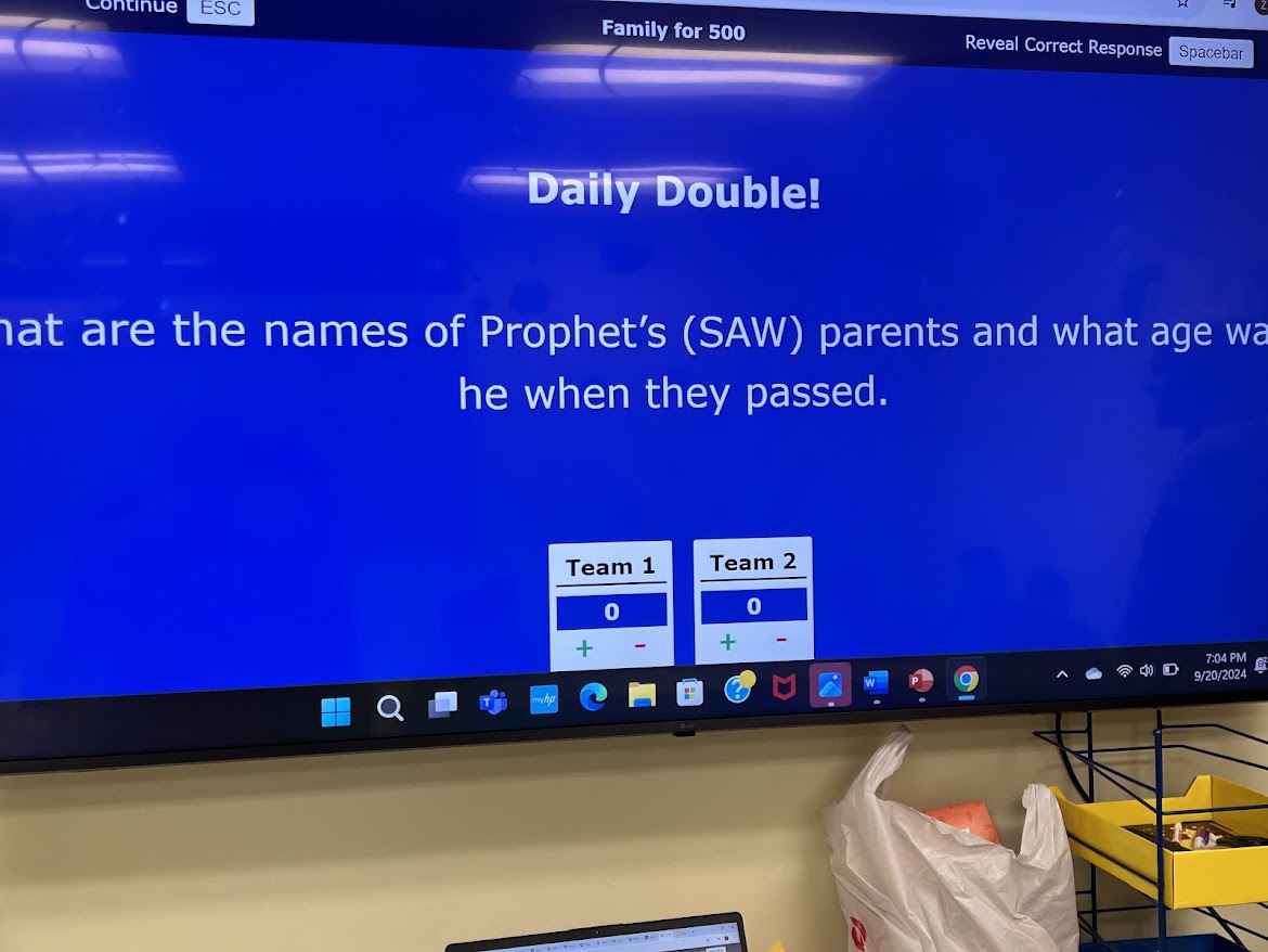 Eid Milad An Nabi Mubarak to you all. We celebrated Prophet Mohammad(s)’s birth anniversary on Friday. We played a Jeopardy game and enjoyed ice cream Also, we learned a new ayah from the Quran.