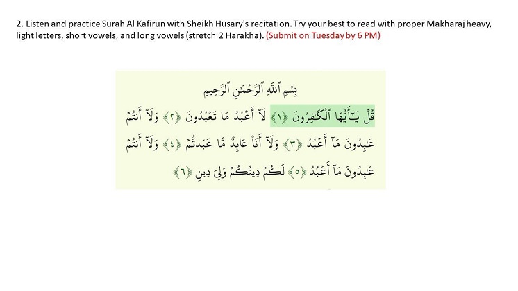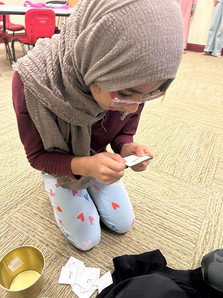 We revised reciting Quranic words with Long Vowels Alif Maddi, Wow Maddi, and Ya Maddi. We played a few games to practice the words. MashaAllah, the kids are progressing well. Very soon, I’ll have them start reciting from the Quran.